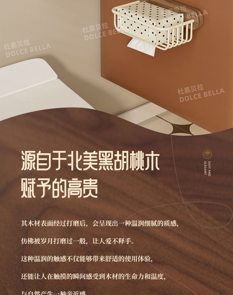 ウォールナットロールペーパーラックバスルーム収納ラック収納バスケットトイレットペーパーホルダーパンチフリーバスルームトイレットペーパーボックス