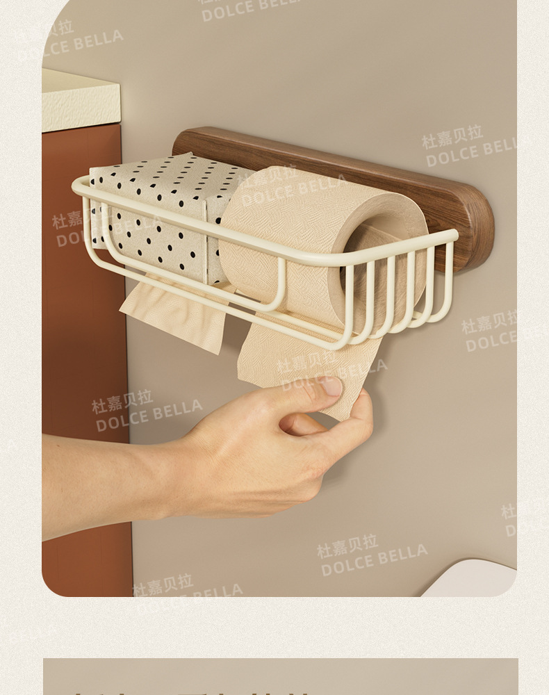 ウォールナットペーパータオルホルダーバスルームフェイスタオル収納ラックパンチフリーウォールマウントロールペーパー収納ペーパーボックスメッシュバスケット