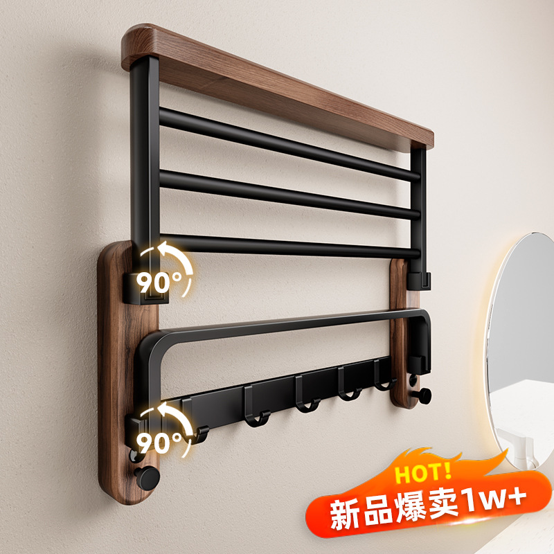 メイラードスタイルブラックウォールナットバスルームタオルラックバスルームパンチフリーバスタオル収納ラックハイエンドバスルームラック