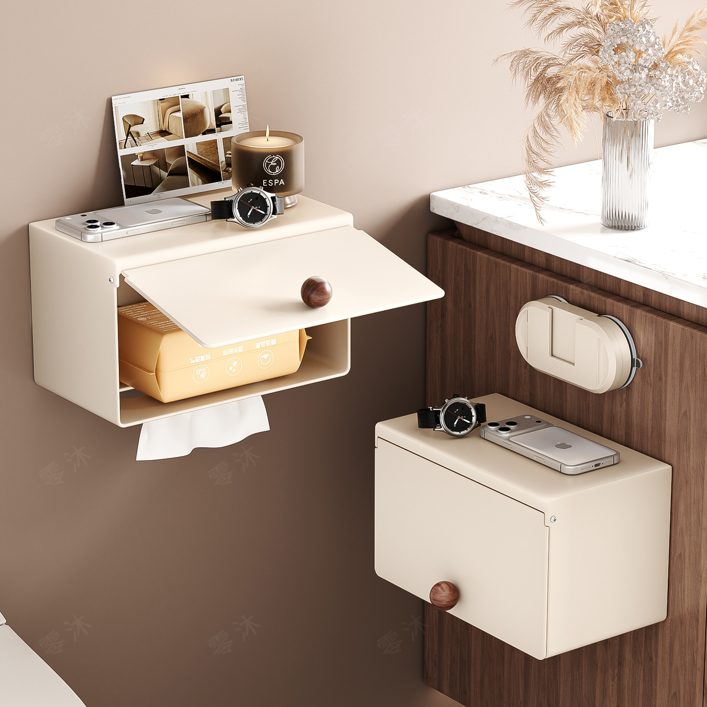 中古风胡桃木厕所纸巾盒卫生间卷纸厕纸盒免打孔壁挂卫生纸置物架