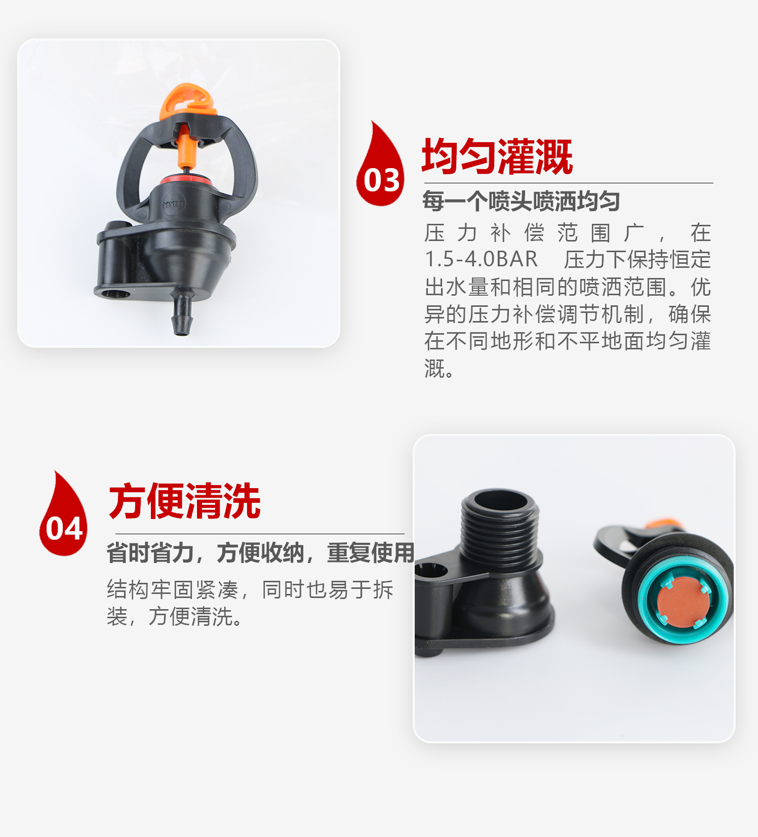 规格 压力补偿喷头(内6)蓝色,压力补偿喷头(1/2外丝)蓝色,压力补偿喷头(倒钩)蓝色,压力补偿喷头(内6)红色,压力补偿喷头(1/2外丝)红色,压力补偿喷头(倒钩)红色,压力补偿喷头(内6)绿色,压力补偿喷头(1/2外丝)绿色,压力补偿喷头(倒钩)绿色