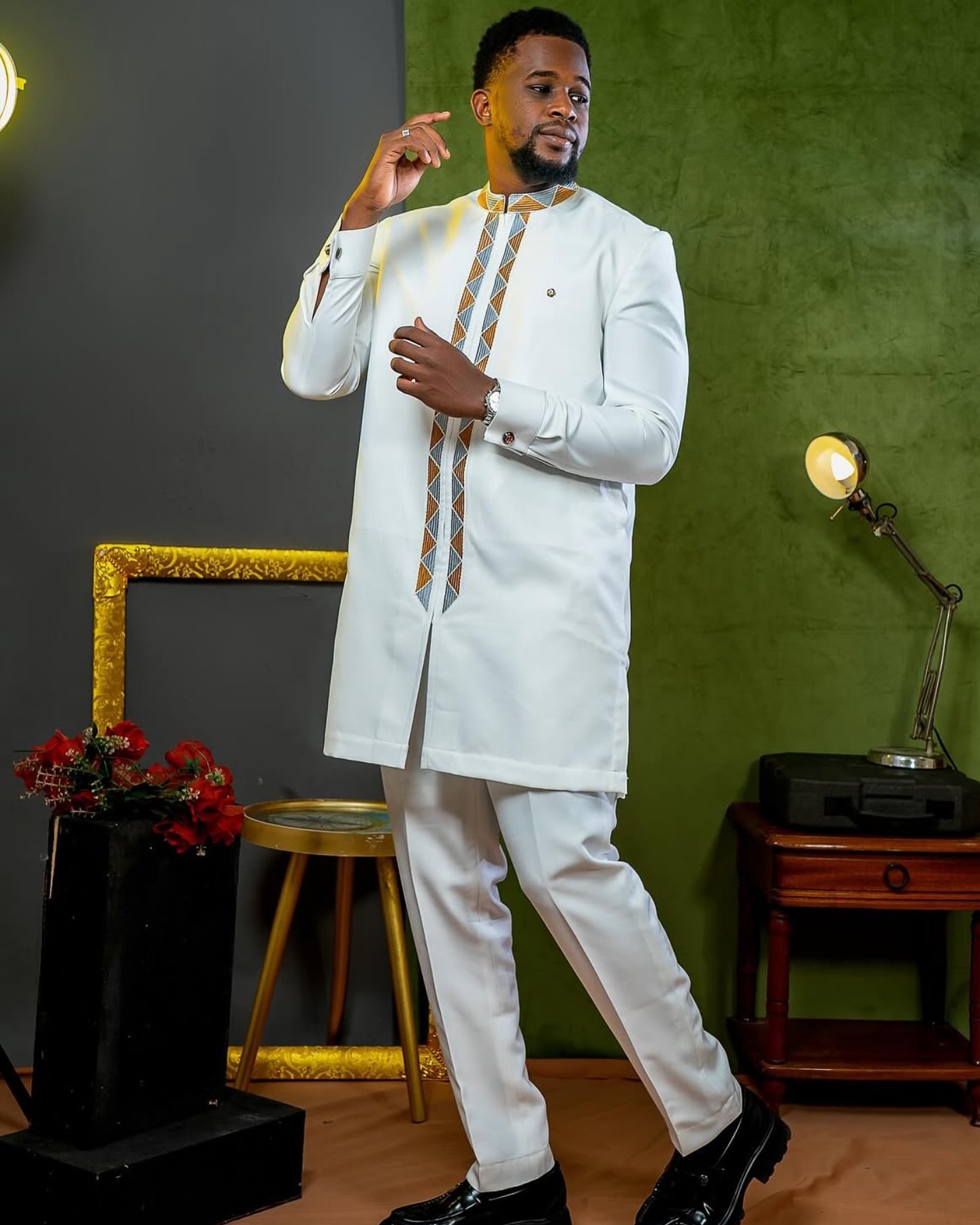 クロスボーダーアフリカエスニックスタイルメンズスーツ長袖刺繍シャツとカジュアルパンツ2ピーススーツ男性カフタン