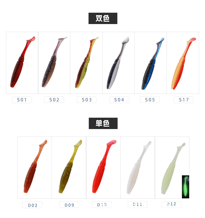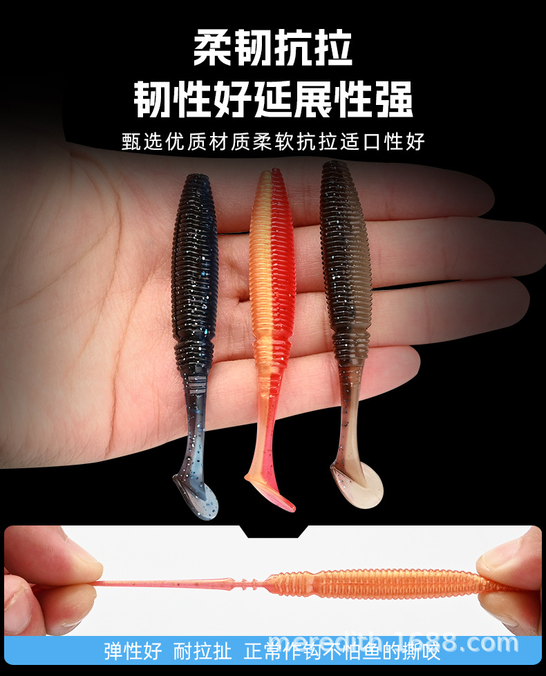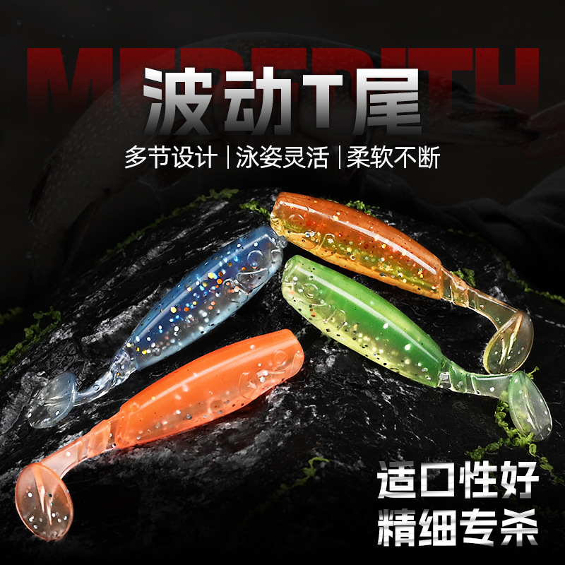 浮水T尾路亚软饵螺纹光面TPE材质6.3cm7.5cm仿真假饵跨境平台热卖