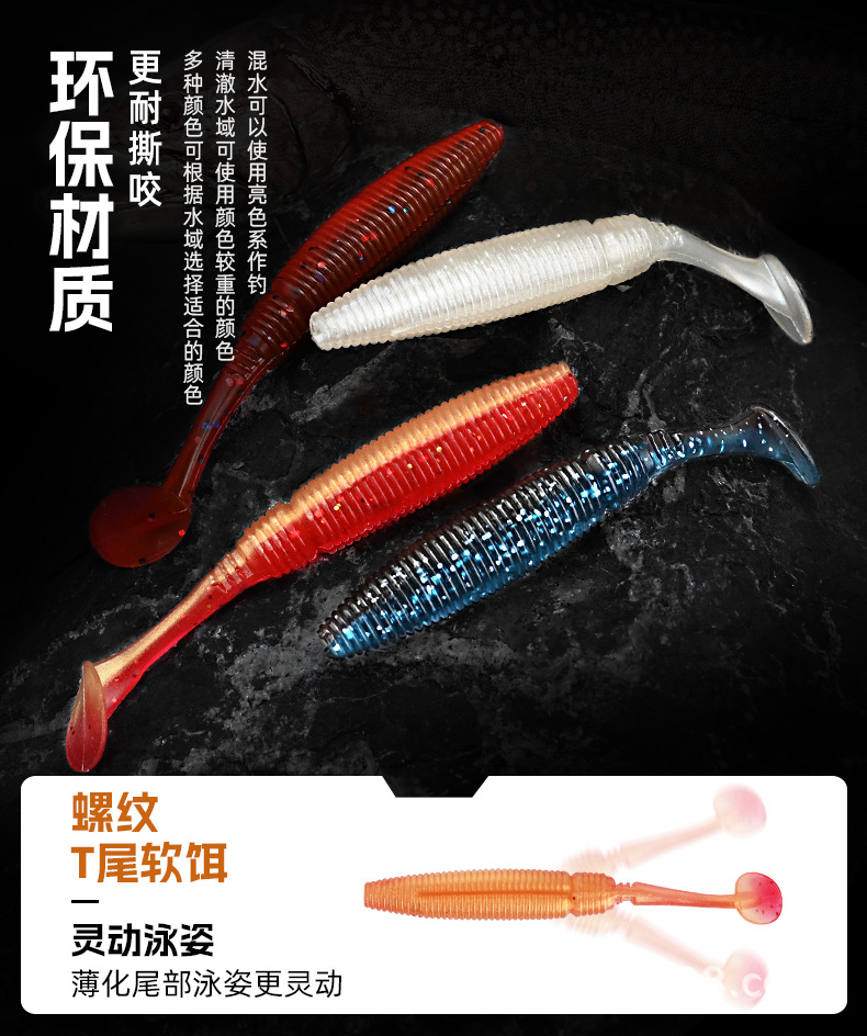 鱼饵类型 螺纹T尾软饵,仿生假饵