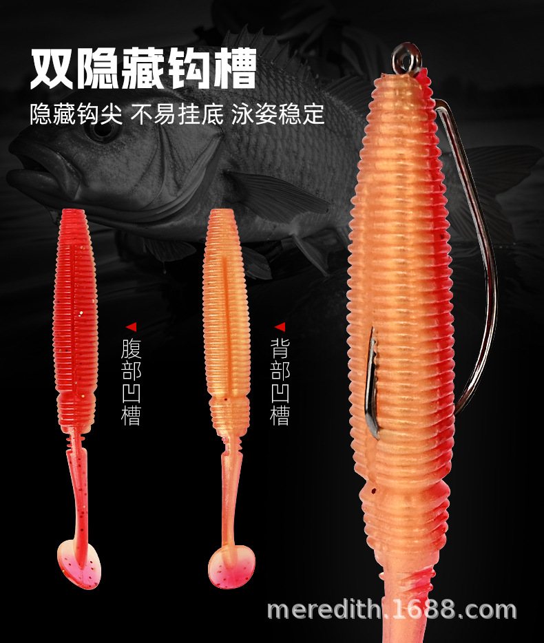反螺纹T尾软饵铅头钩黑坑野钓路亚饵鲈鱼鳜鱼翘嘴扰流软虫假软饵