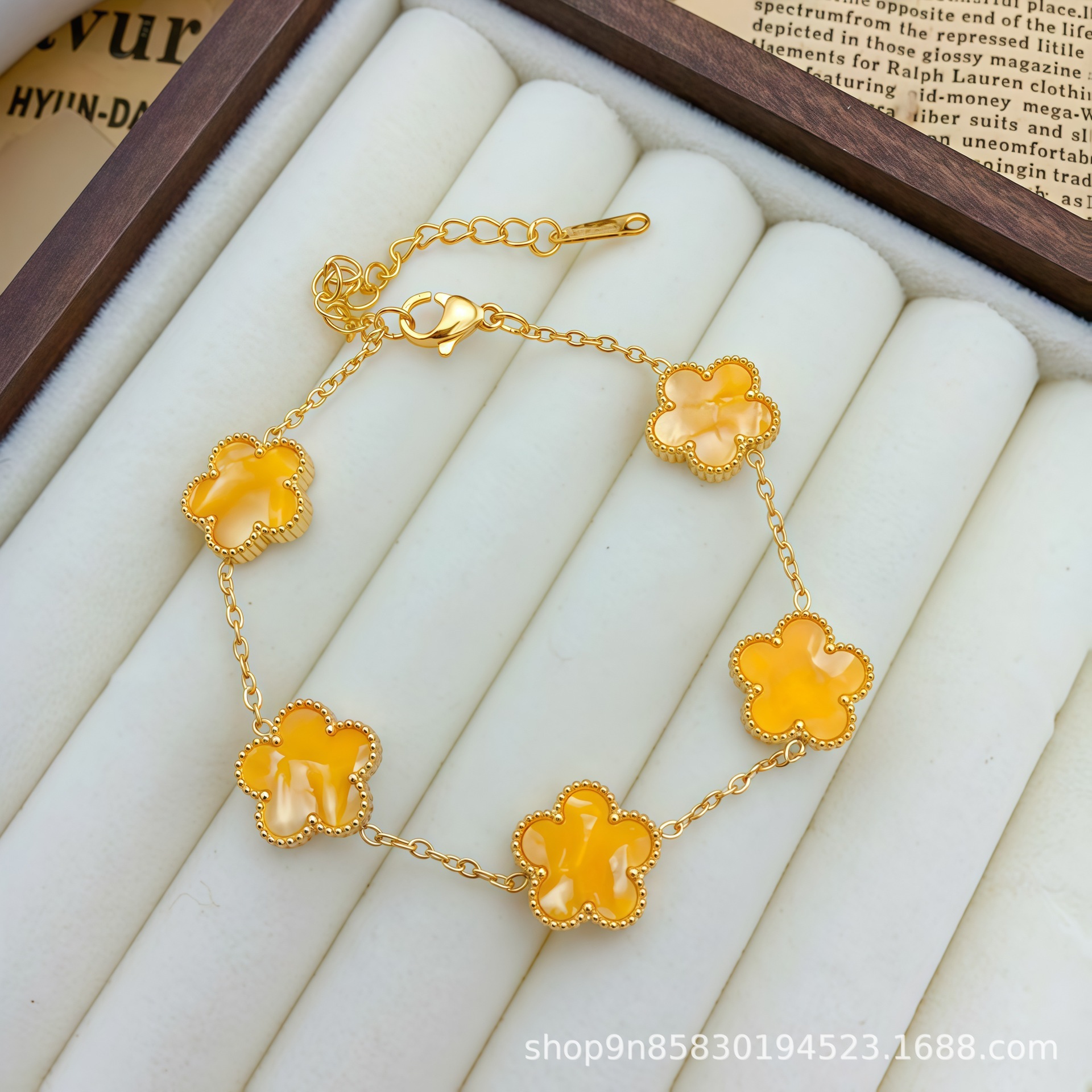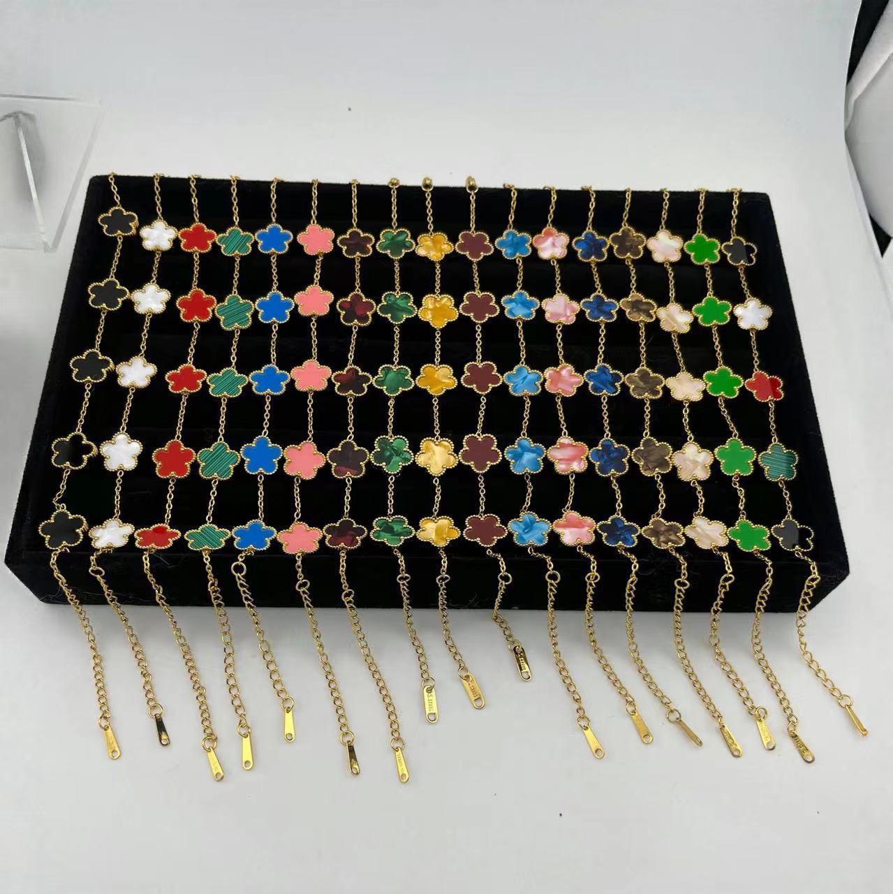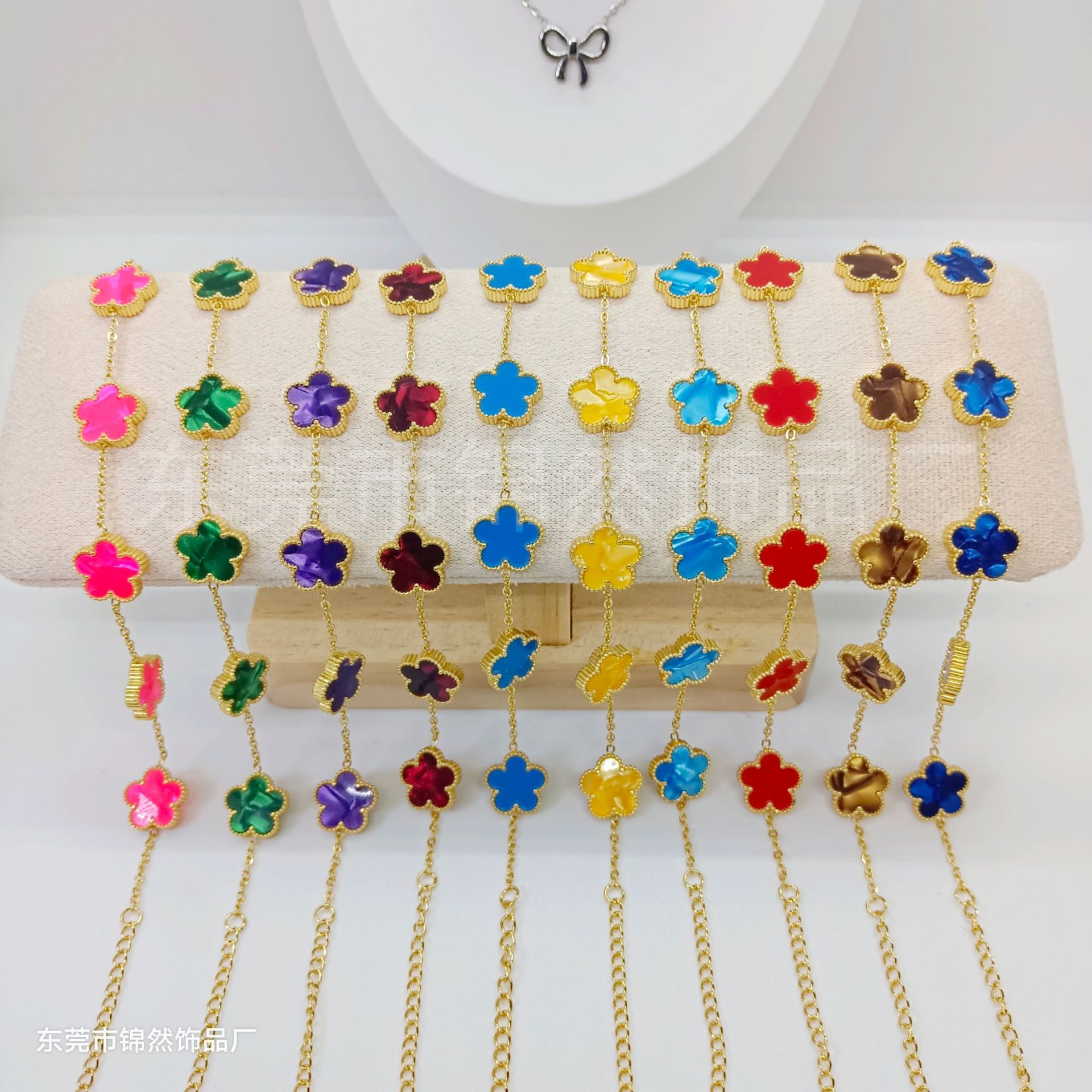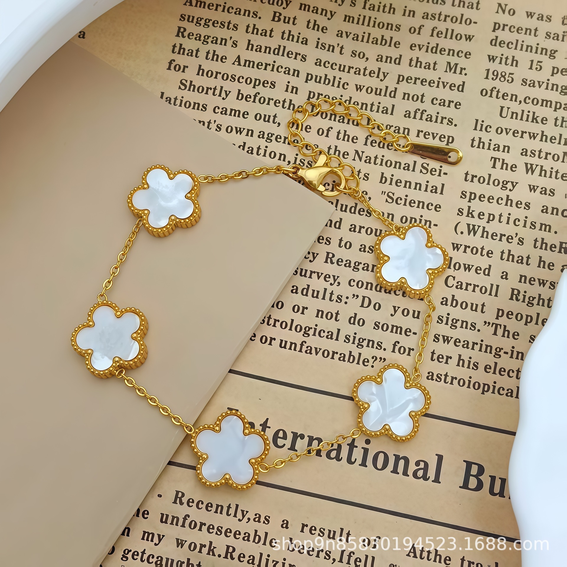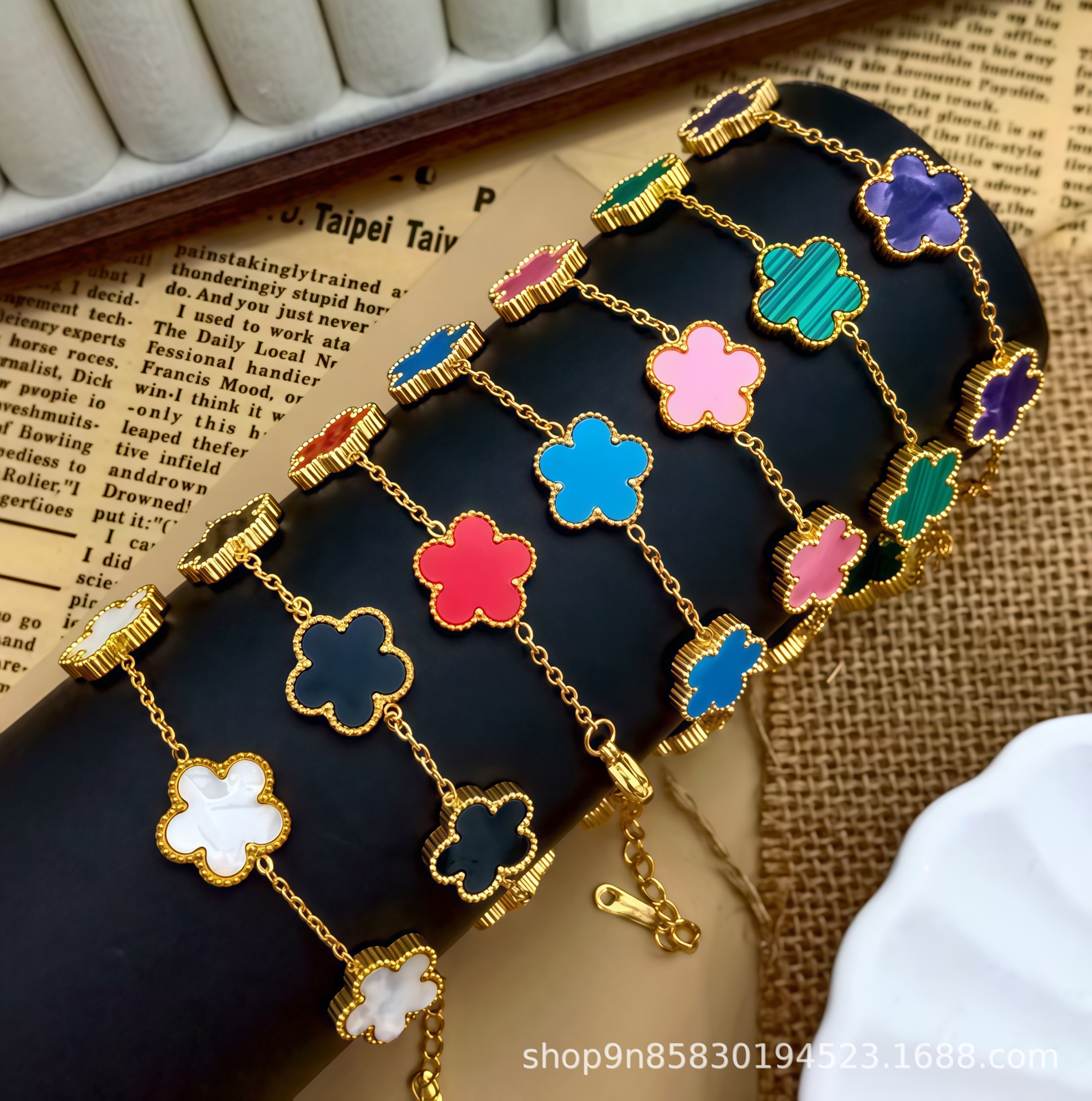 跨境新款饰品双面钛钢五花五叶草手链女不掉色18K金轻奢饰品批发