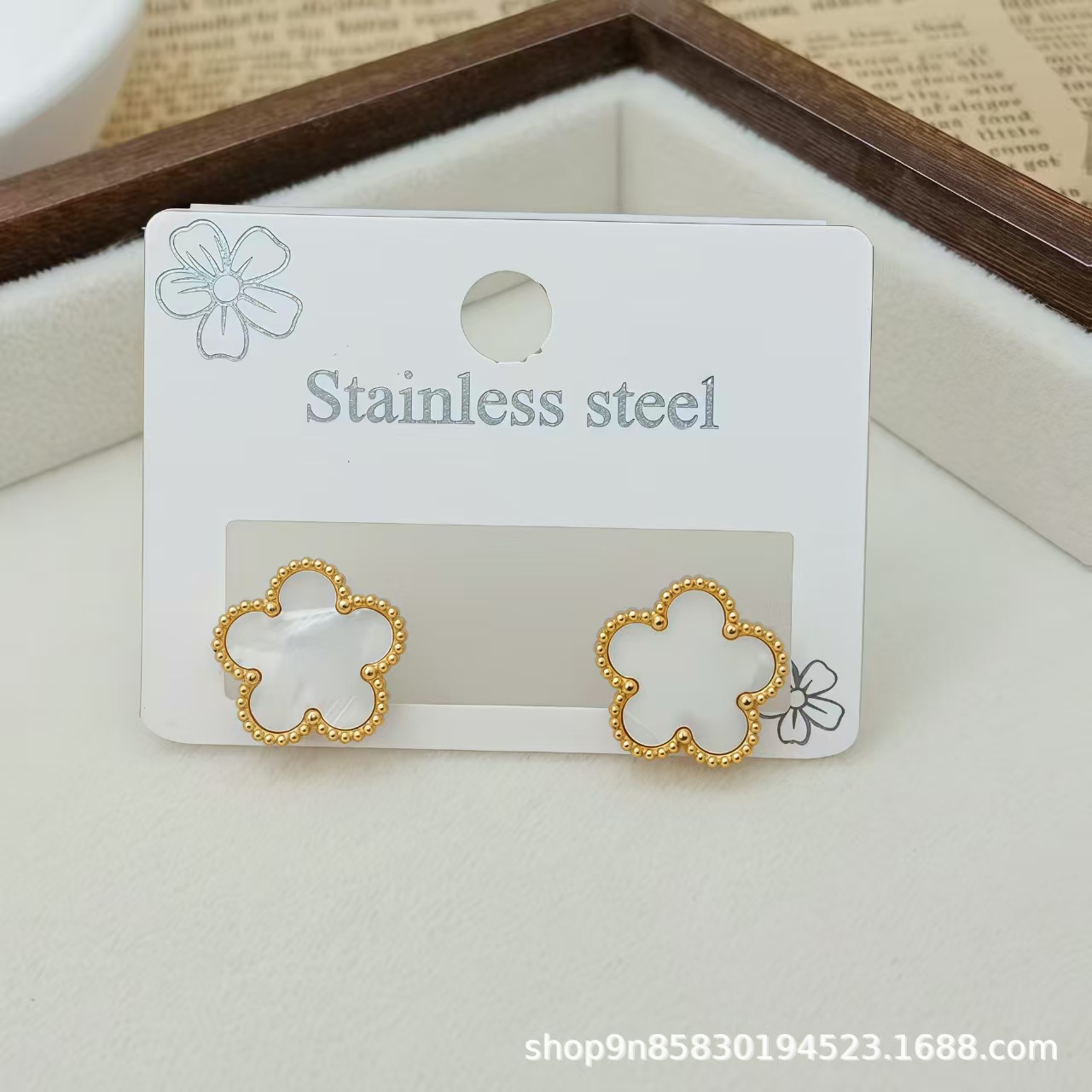 国境を越えてよく売れているステンレス五葉草の鎖のネックレスのピアスの女性の3セットは18kメッキして色を落とさないアクセサリーの卸売りをします。