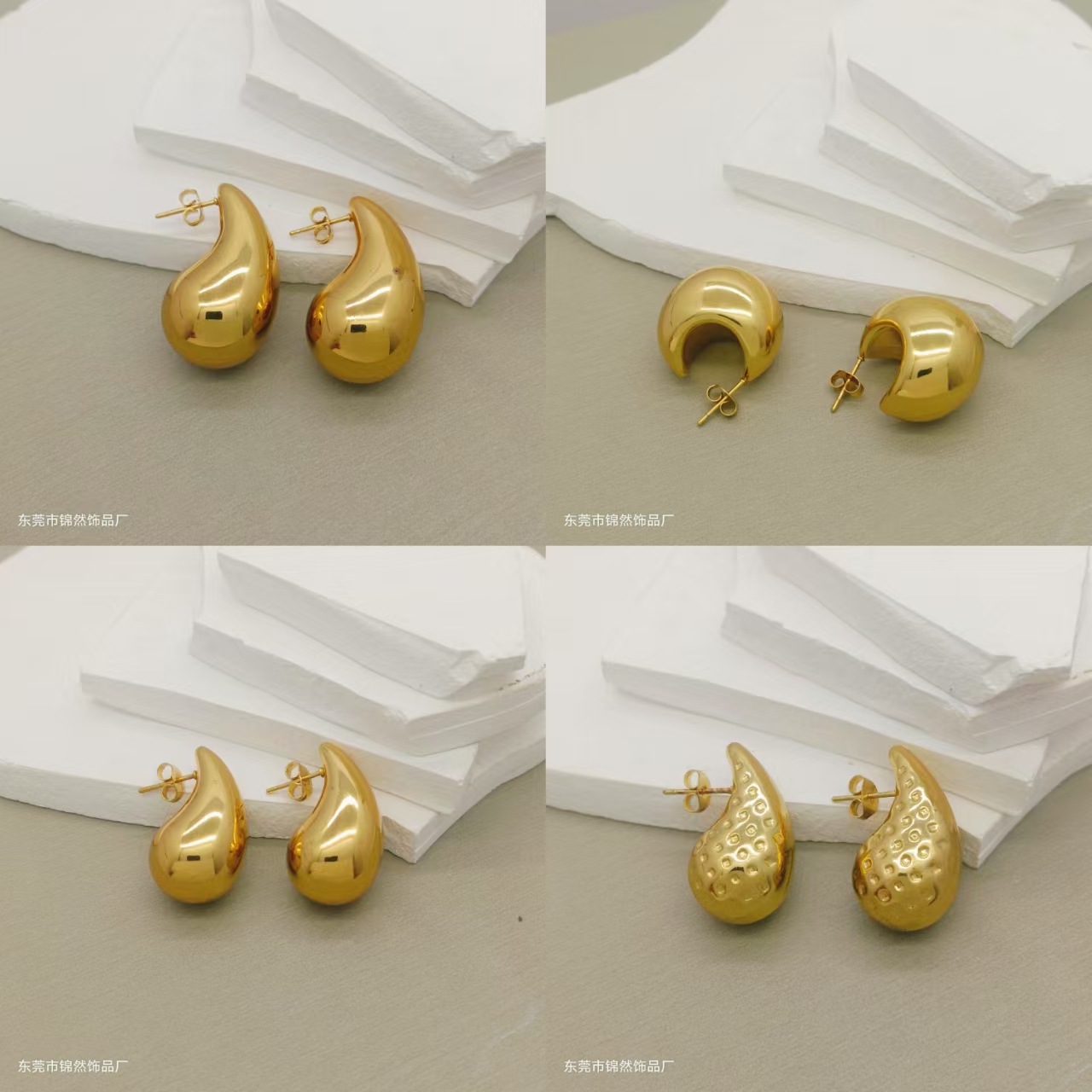 越境欧米ファッション軽豪華耳飾りステンレス金メッキチタン鋼水滴形高級感中空イヤリング