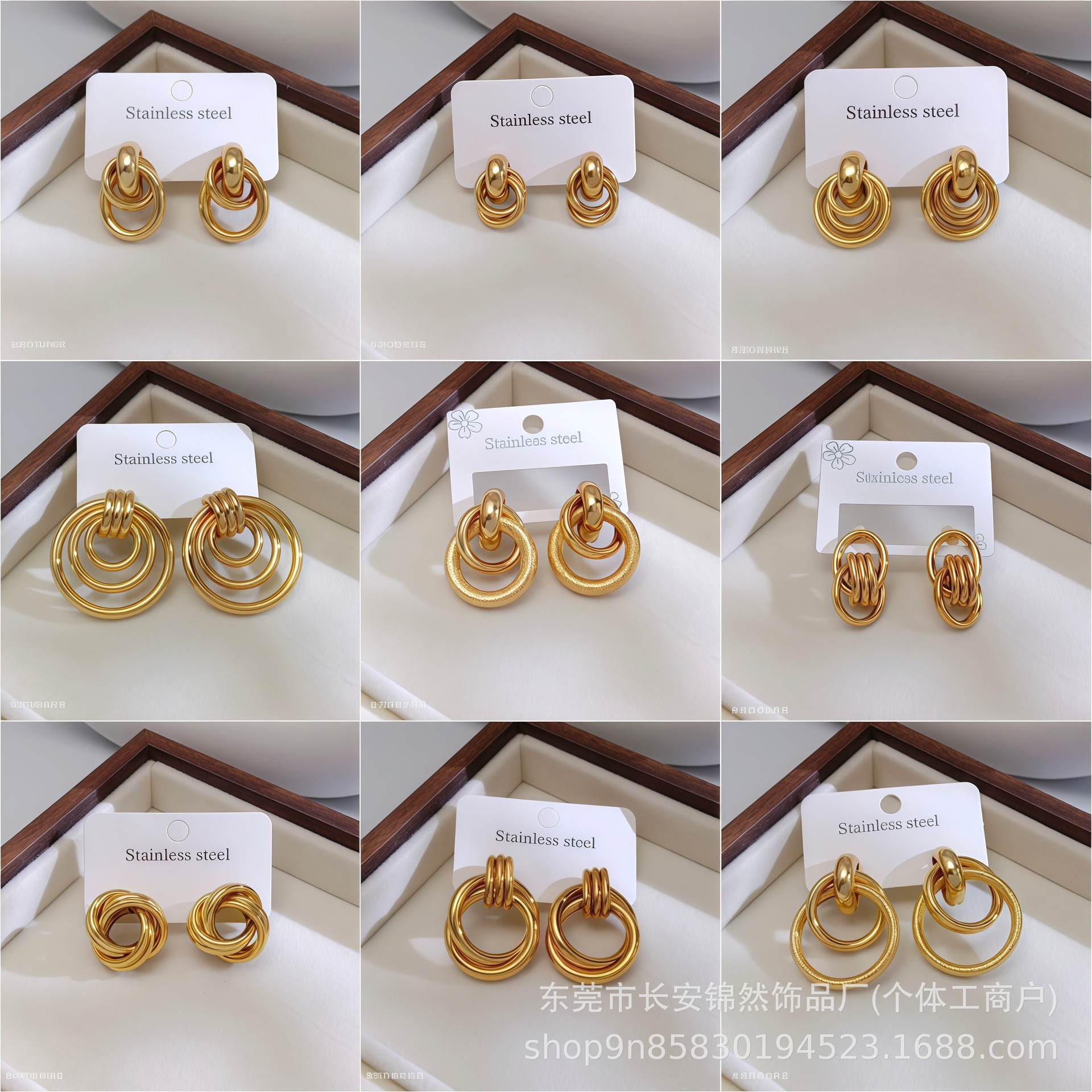 跨境欧美风金色圆圈几何扭曲多层耳环小众设计感时尚百搭耳饰