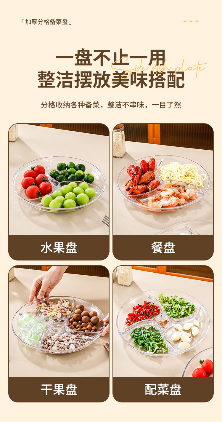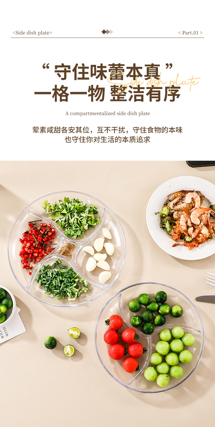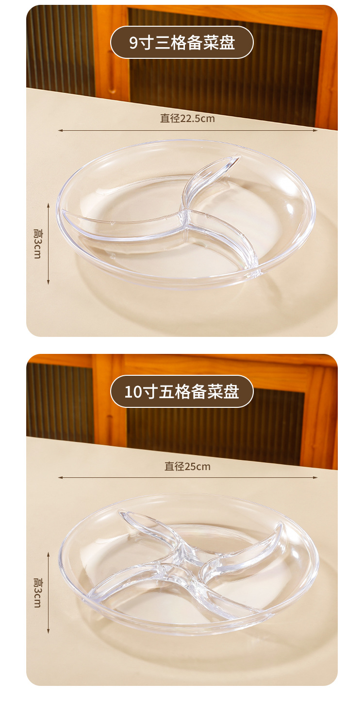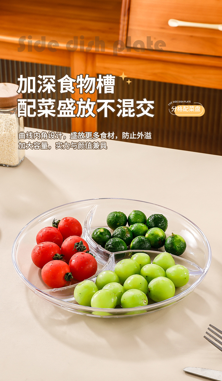 跨境分格盘子亚克力早餐餐具儿童分餐盘家用水果盘分隔配菜盘批发