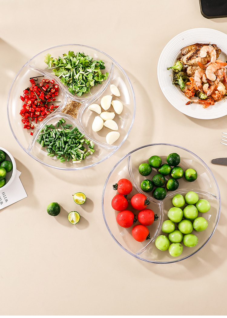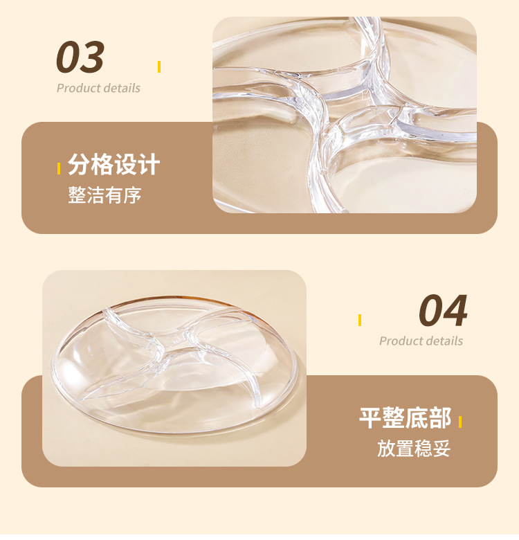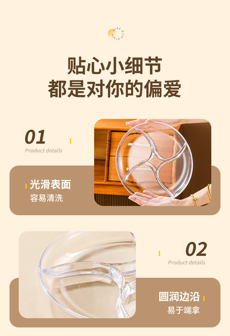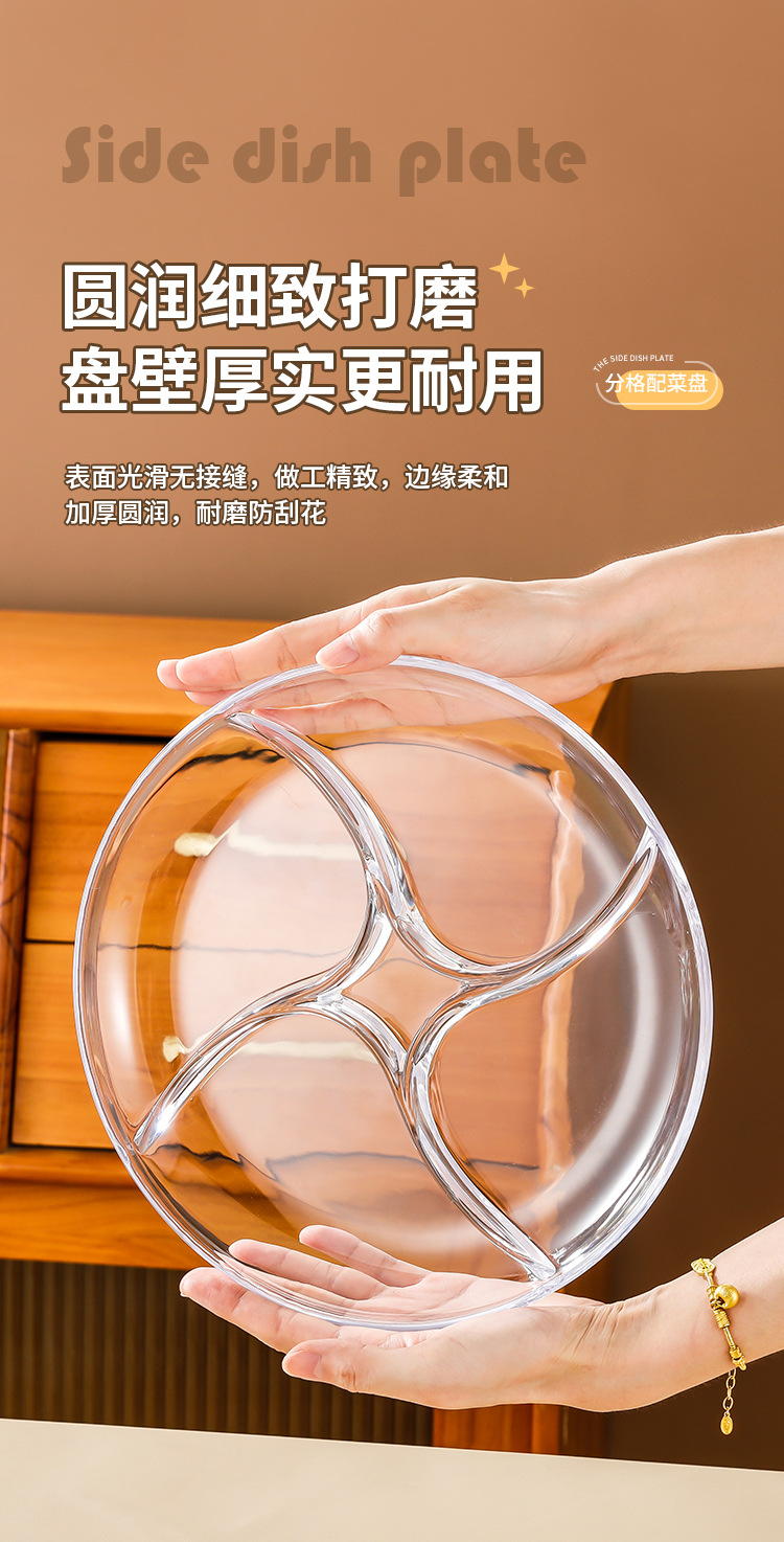 跨境分格盘子亚克力早餐餐具儿童分餐盘家用水果盘分隔配菜盘批发