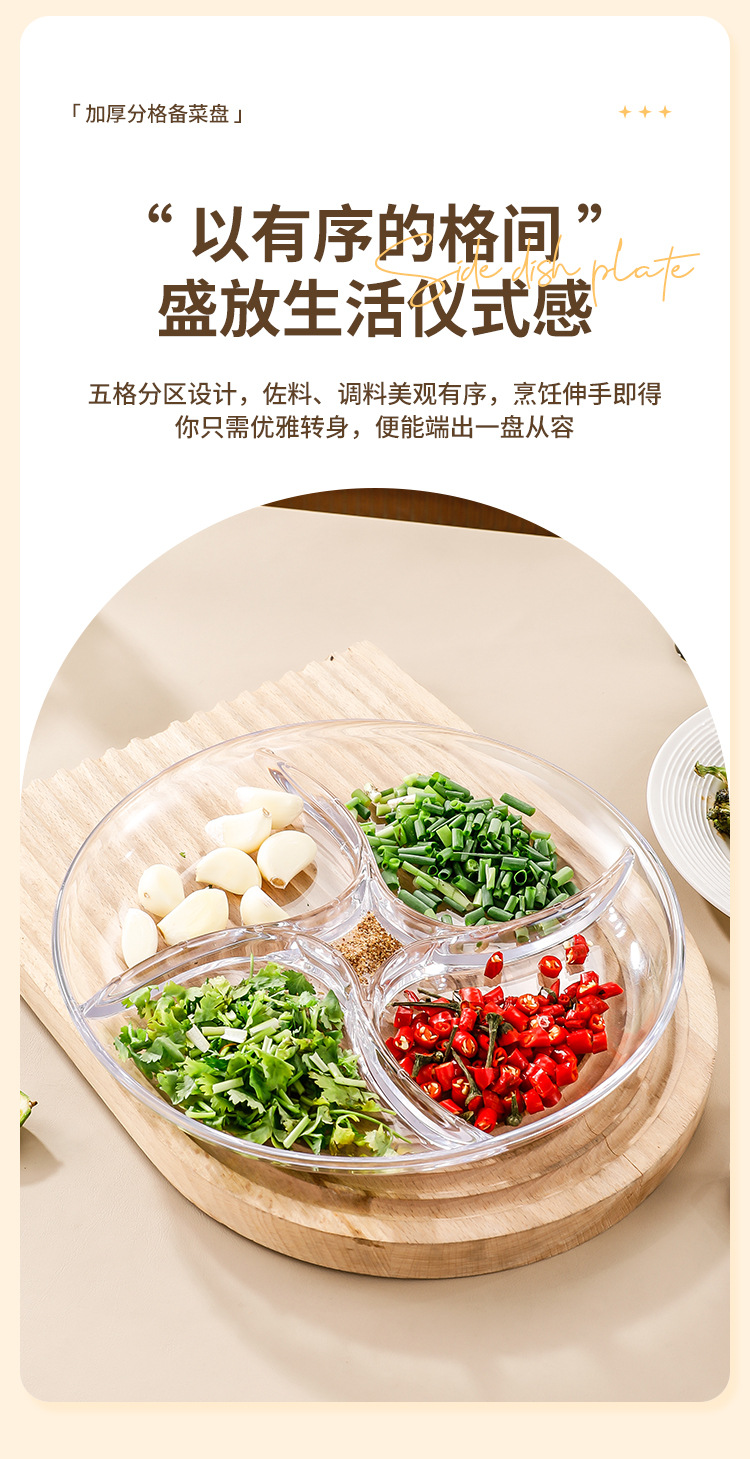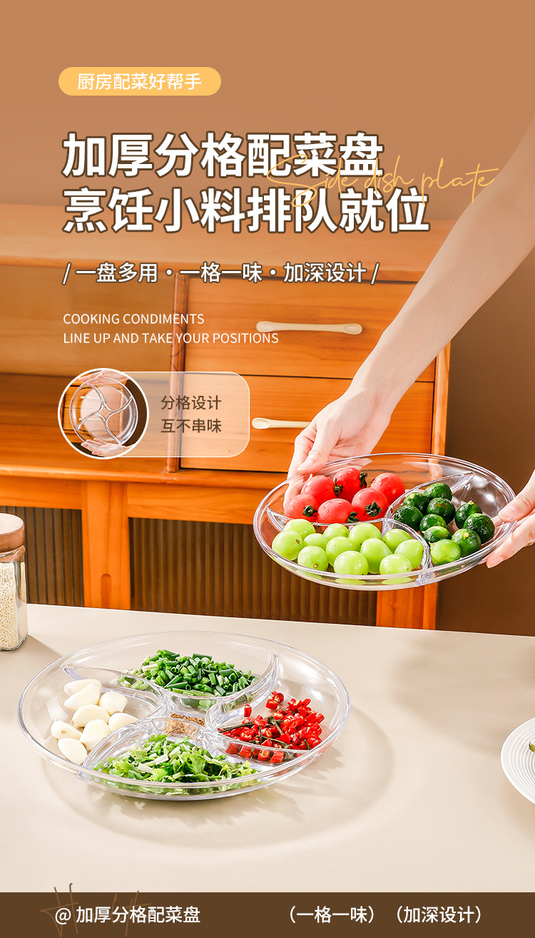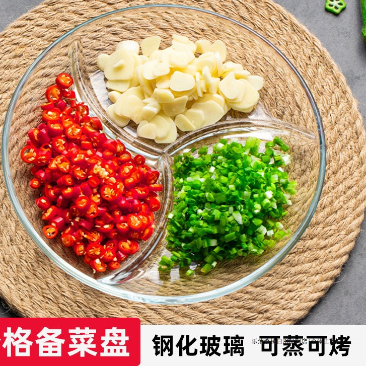 葱姜蒜备菜盘火锅配菜盘分格餐盘佐料家用小料厨房台面玻璃三格大
