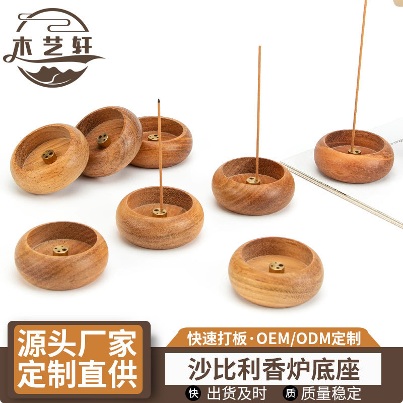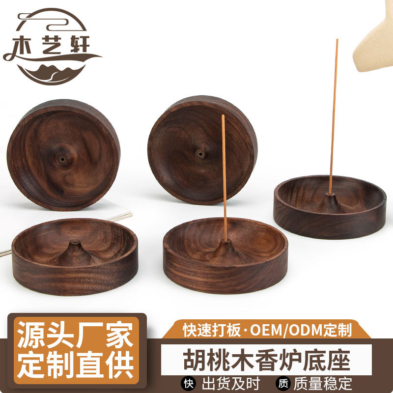 北米黒胡桃木実木線香家庭用香挿し手作り茶道円形香炉香台座沈香盤托