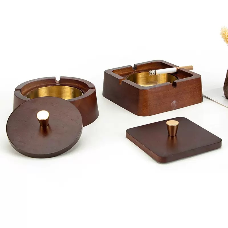 胡桃木灰皿家庭用客間蓋付き飛灰防止ステンレス内胆創意オフィス品質灰皿