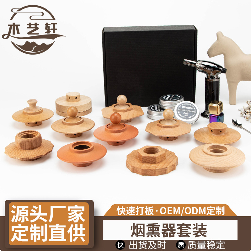 烟灰缸防飞烟带盖家用办公高颜值实木烟灰缸送礼首选木质创意