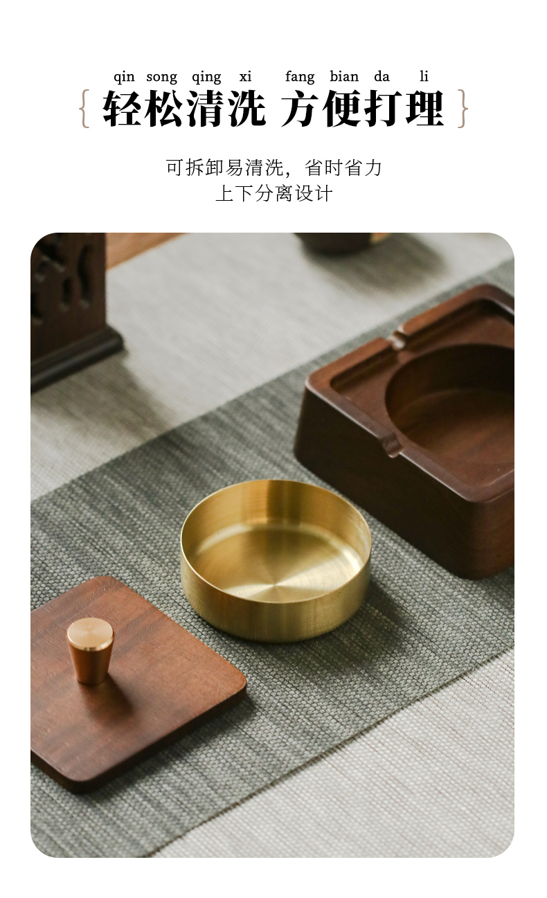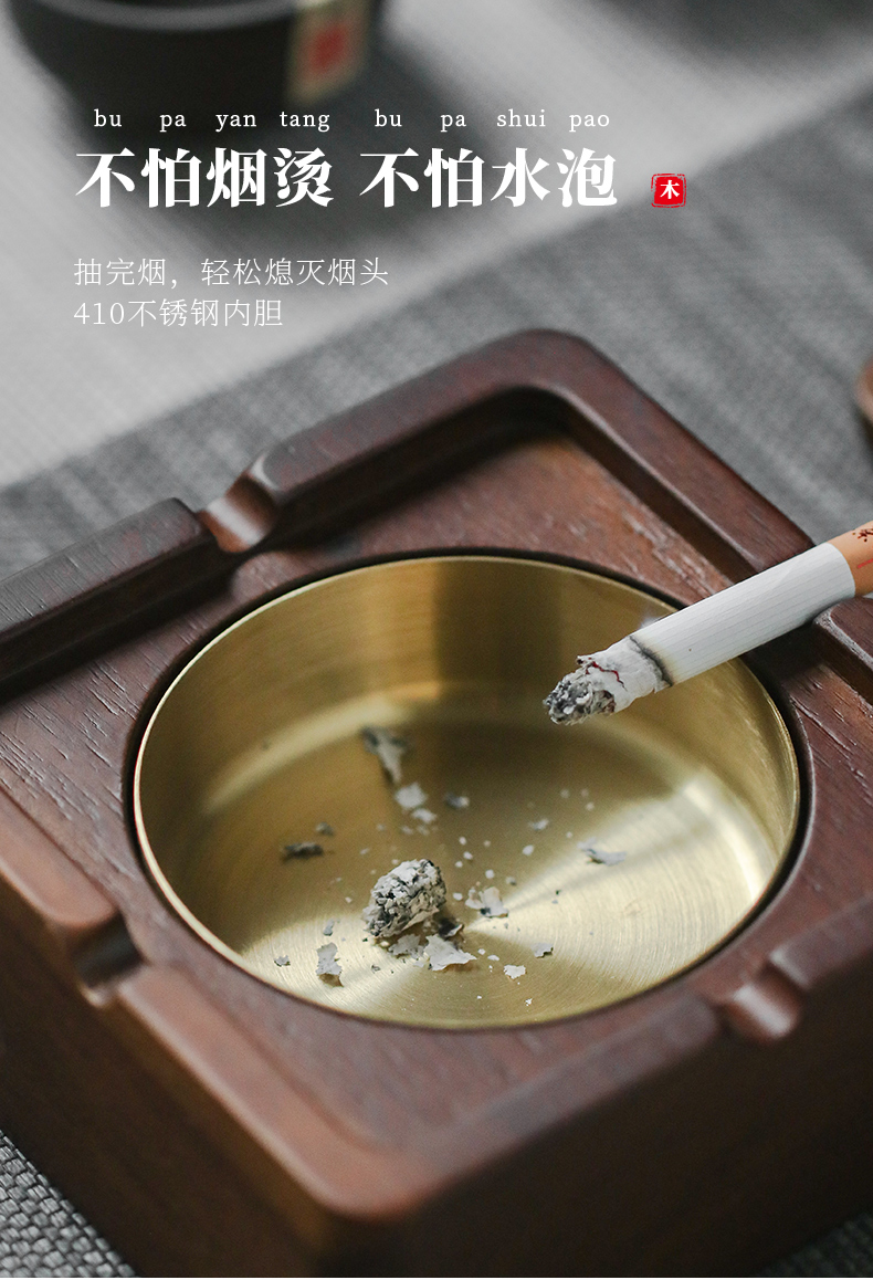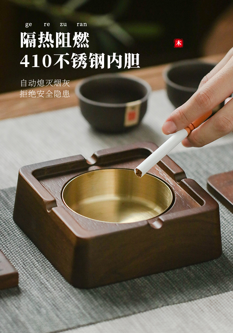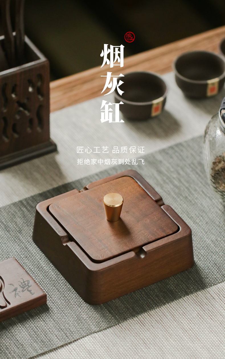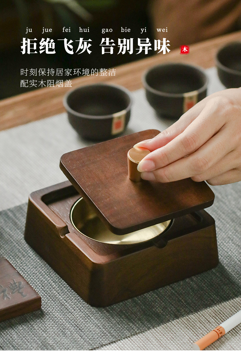 烟灰缸实木高端大气档次中式带盖高级感家用客厅轻奢创意办公室