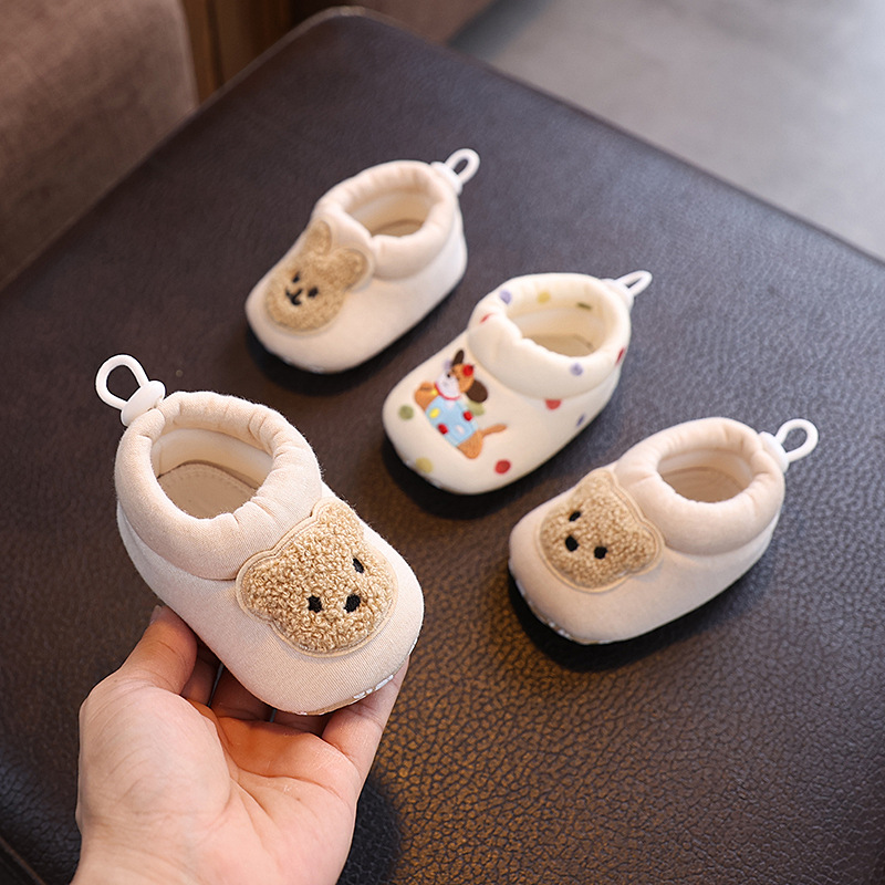 冬の毛羽靴保温靴は足が柔らかい底にベルベットが厚く、男女の赤ちゃんの靴熊のかわいい綿靴を厚くしている