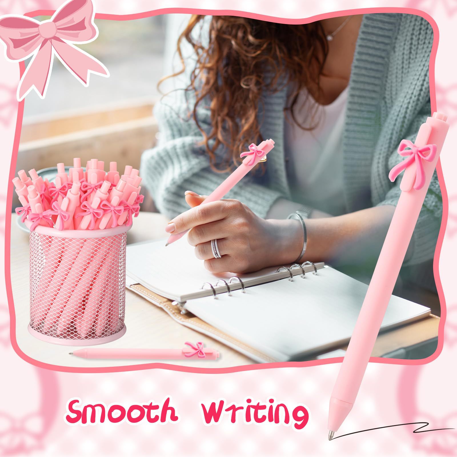 粉色蝴蝶结系列少女高颜值学生文具笔黑笔PVC软胶按动中性笔批发