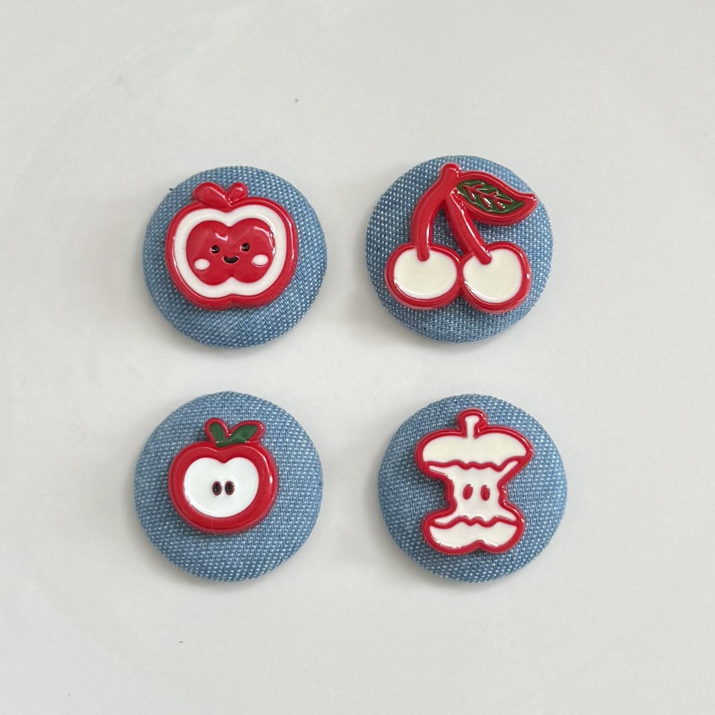 红色苹果圆形牛仔包布扣diy手工材料发夹头饰手机壳装饰洞洞鞋