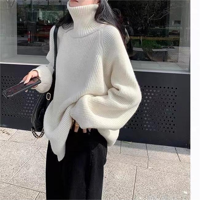 ヨーロッパの国境を越えた秋冬の厚いタートルネックの女性用のゆったりとした多用途のニットプルオーバーセーター、女性用のレイジースタイルのボトリングシャツ