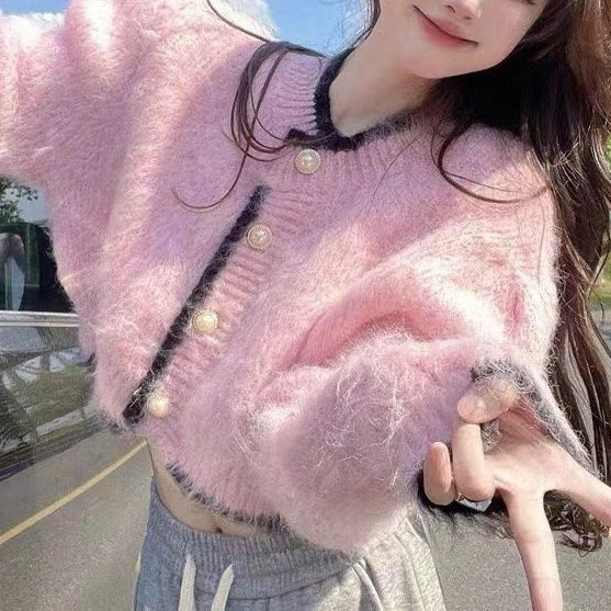 软糯仿水貂绒毛衣短外套女冬季2025新款韩版宽松时尚长袖针织开衫