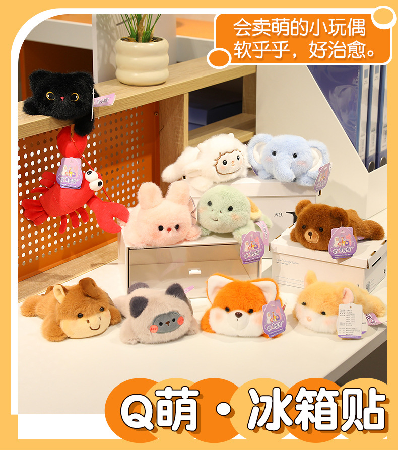 卡通冰箱贴毛绒玩具趣味磁力趴款小动物公仔大象兔子玩偶桌伴娃娃