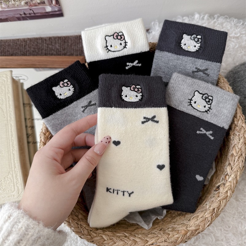 ミディアムソックスハローキティ可爱いグレー女の子ロングソックス秋冬春秋ins潮日系配徳訓靴