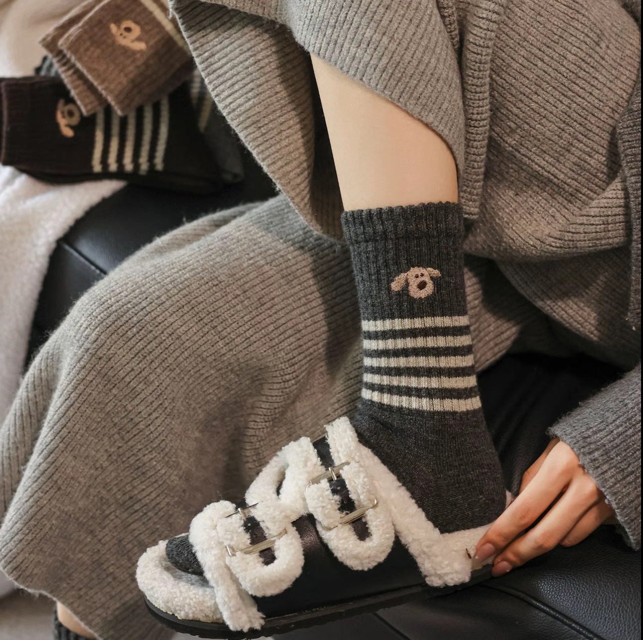 秋冬新款花边袜子女中筒袜可爱卡通小狗韩版ins潮百搭诸暨袜业