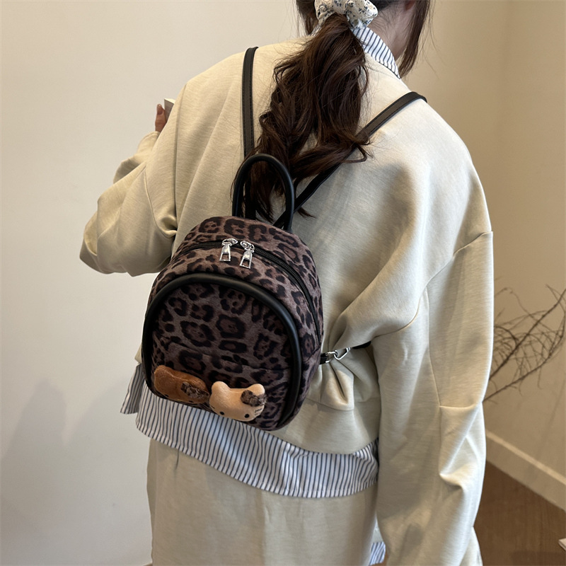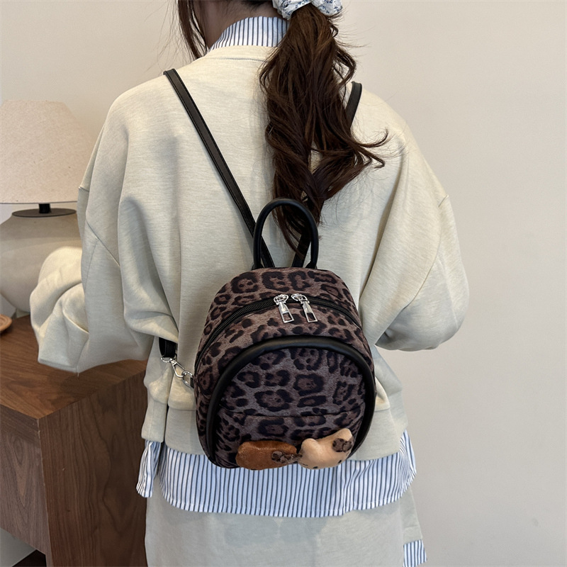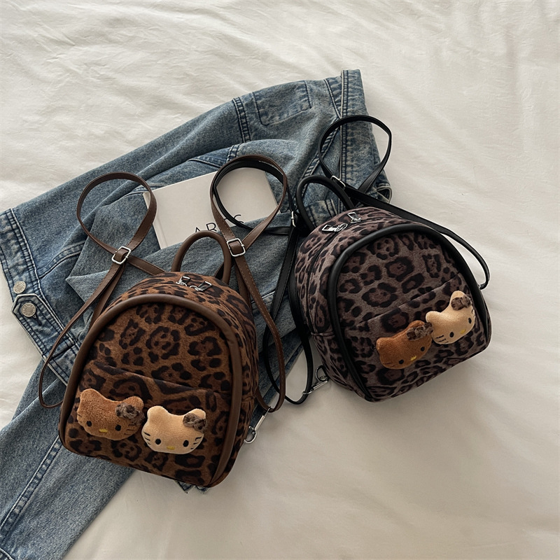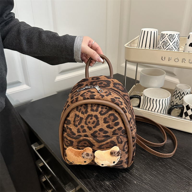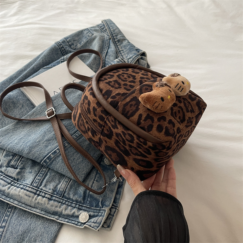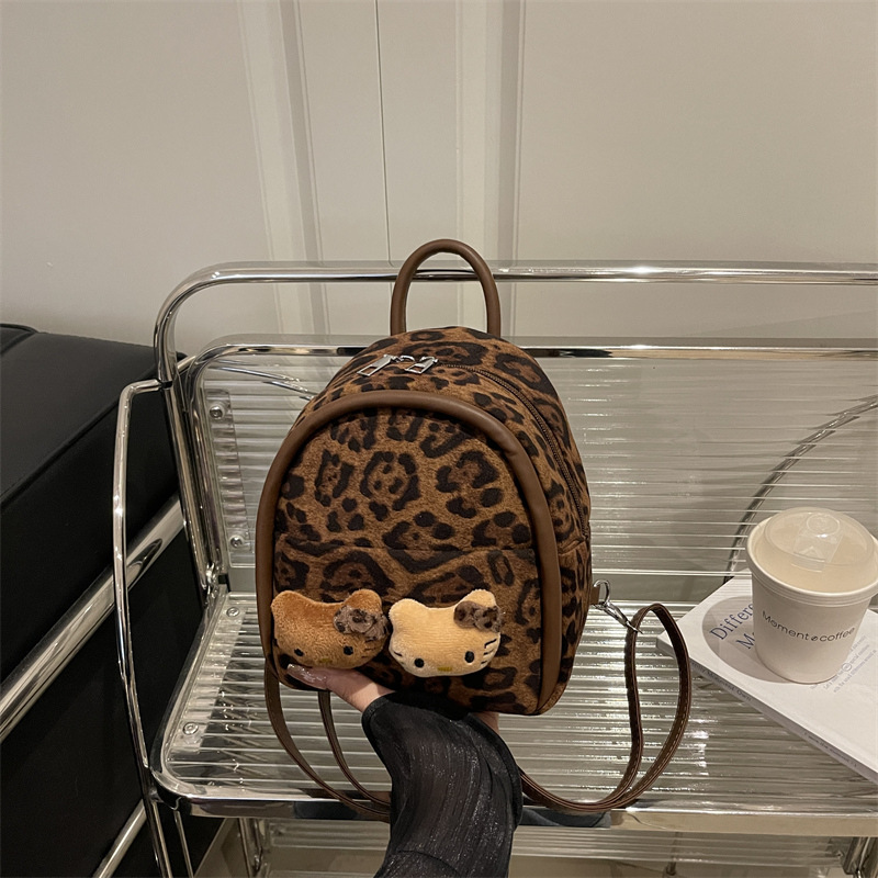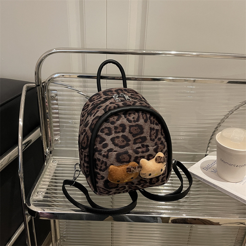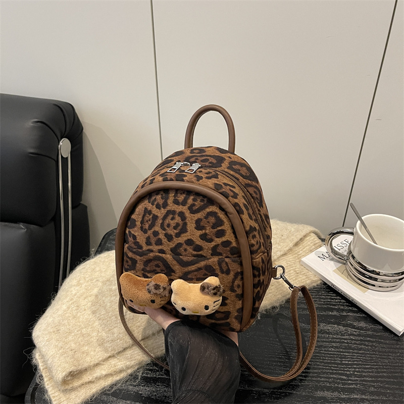 2025 韩范潮流时尚豹纹包 单肩双背包挂饰猫咪可爱元素包手提包
