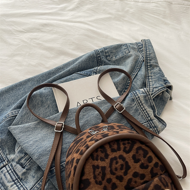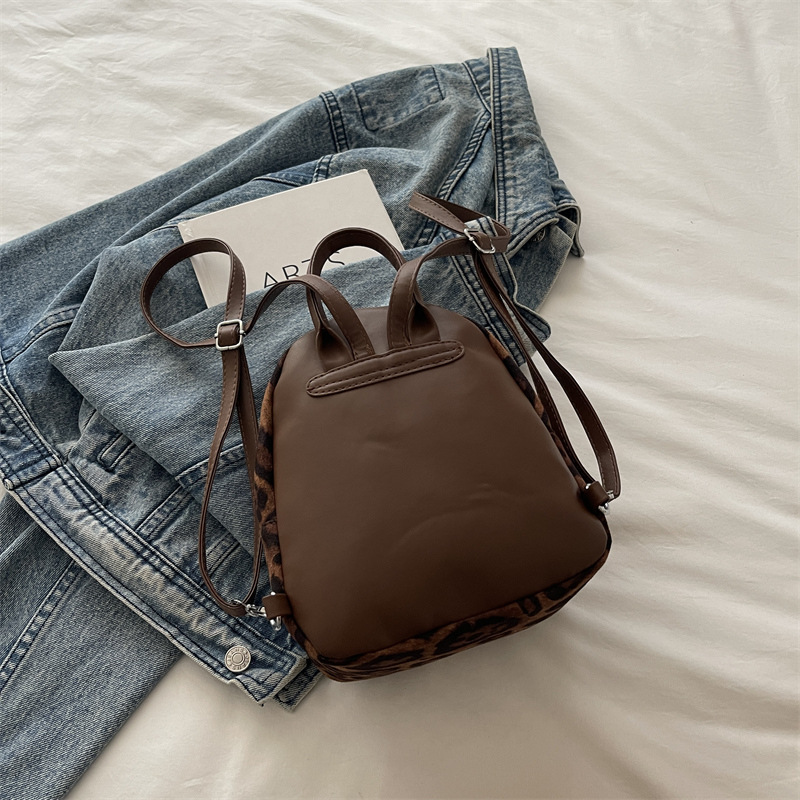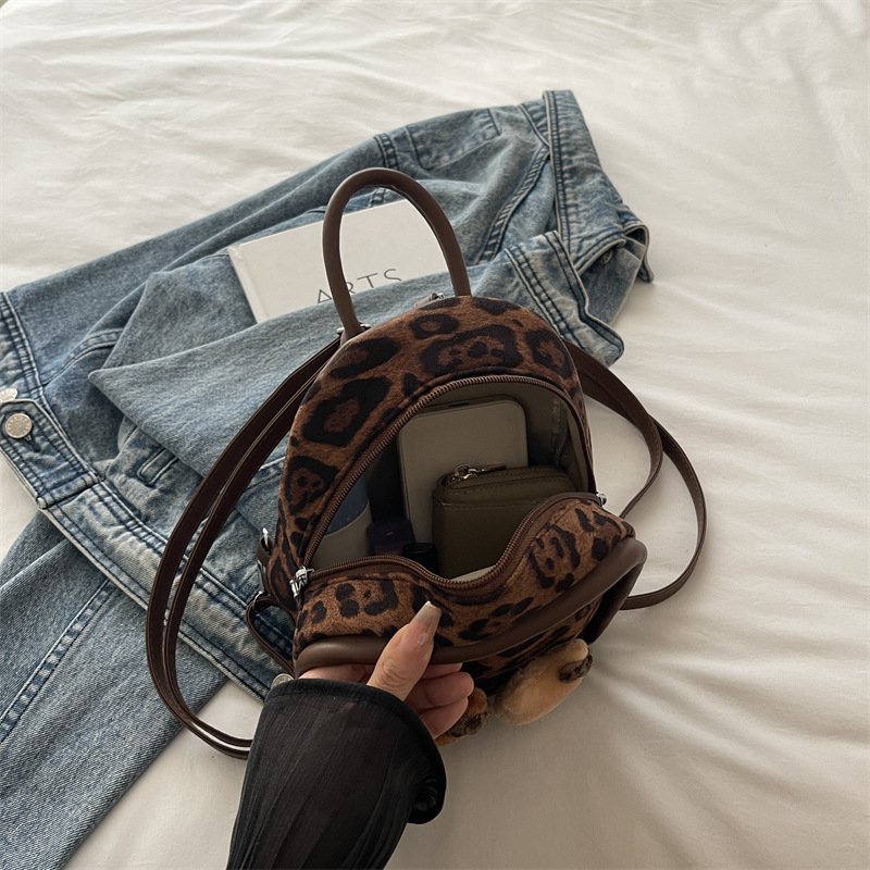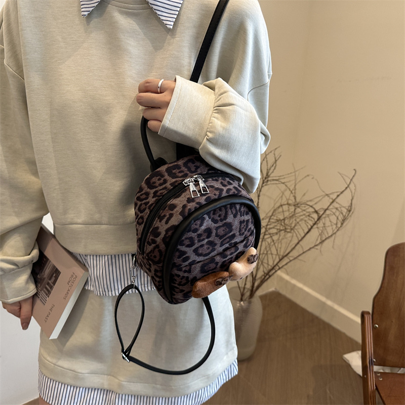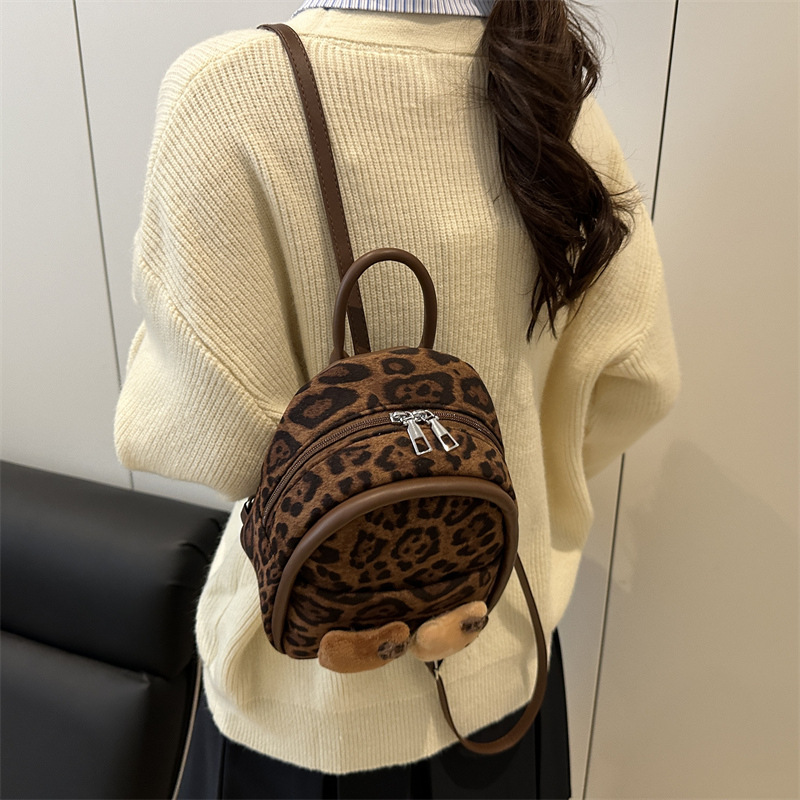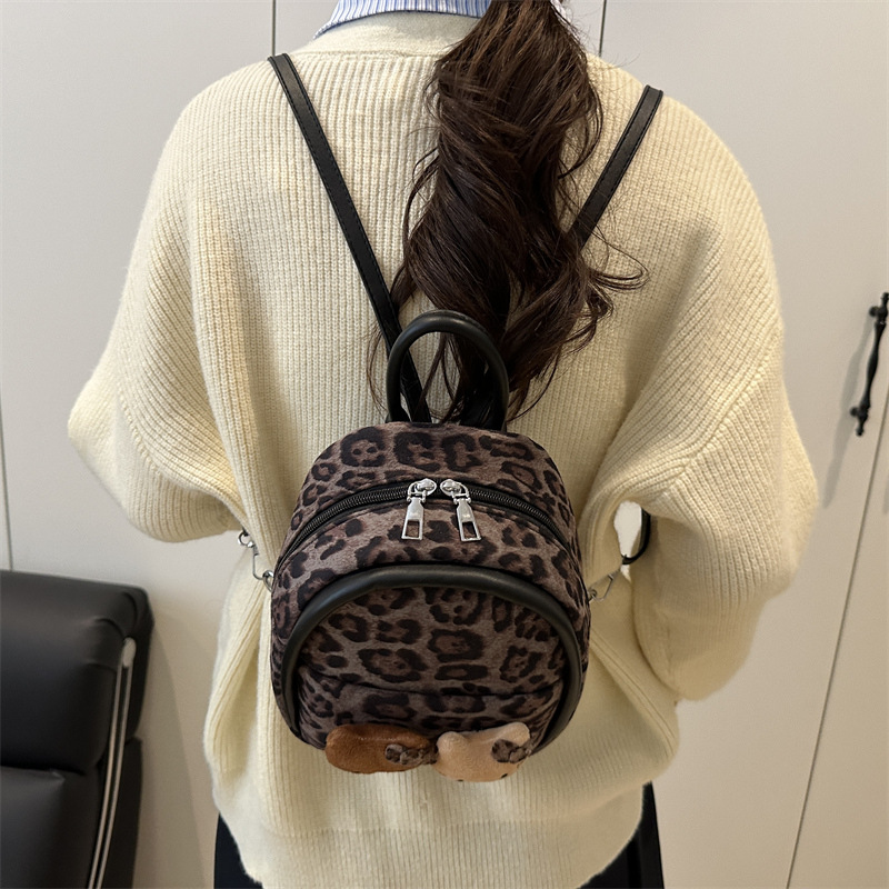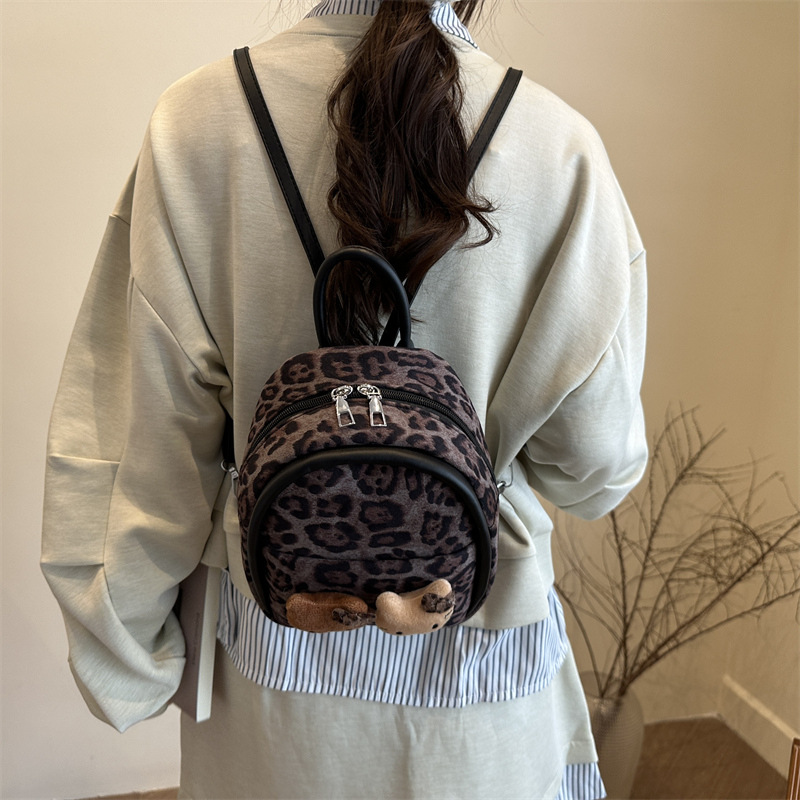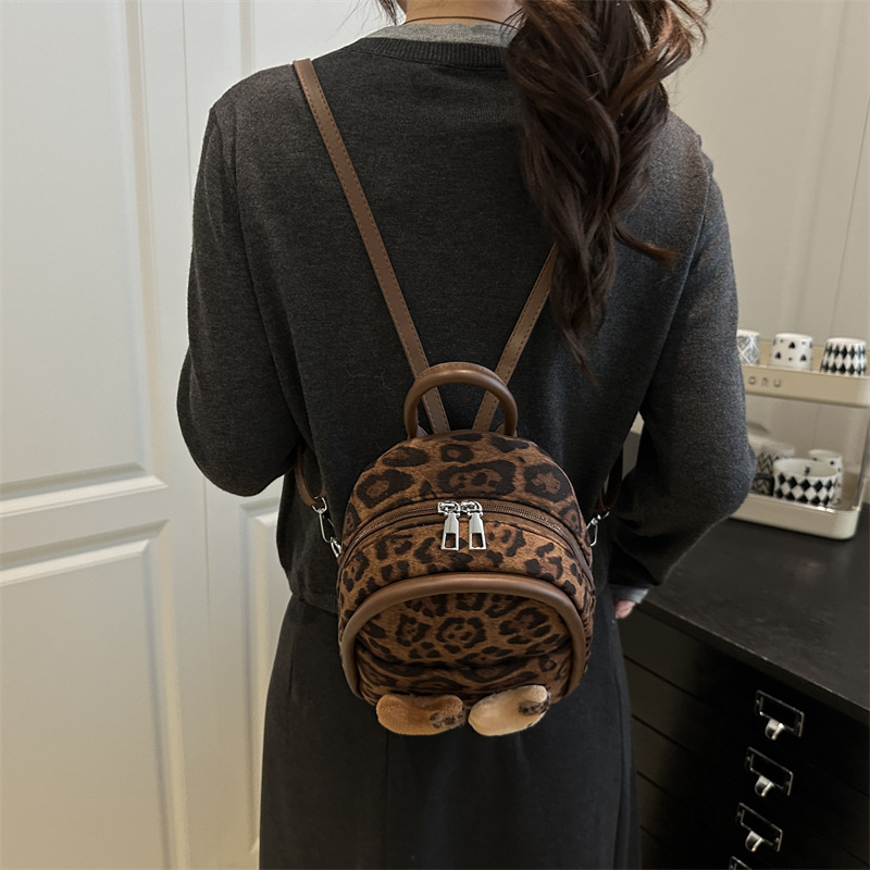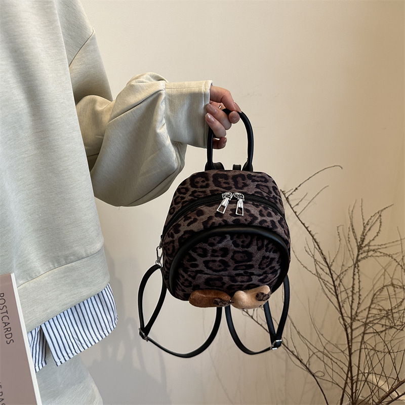 2025 韩范潮流时尚豹纹包 单肩双背包挂饰猫咪可爱元素包手提包