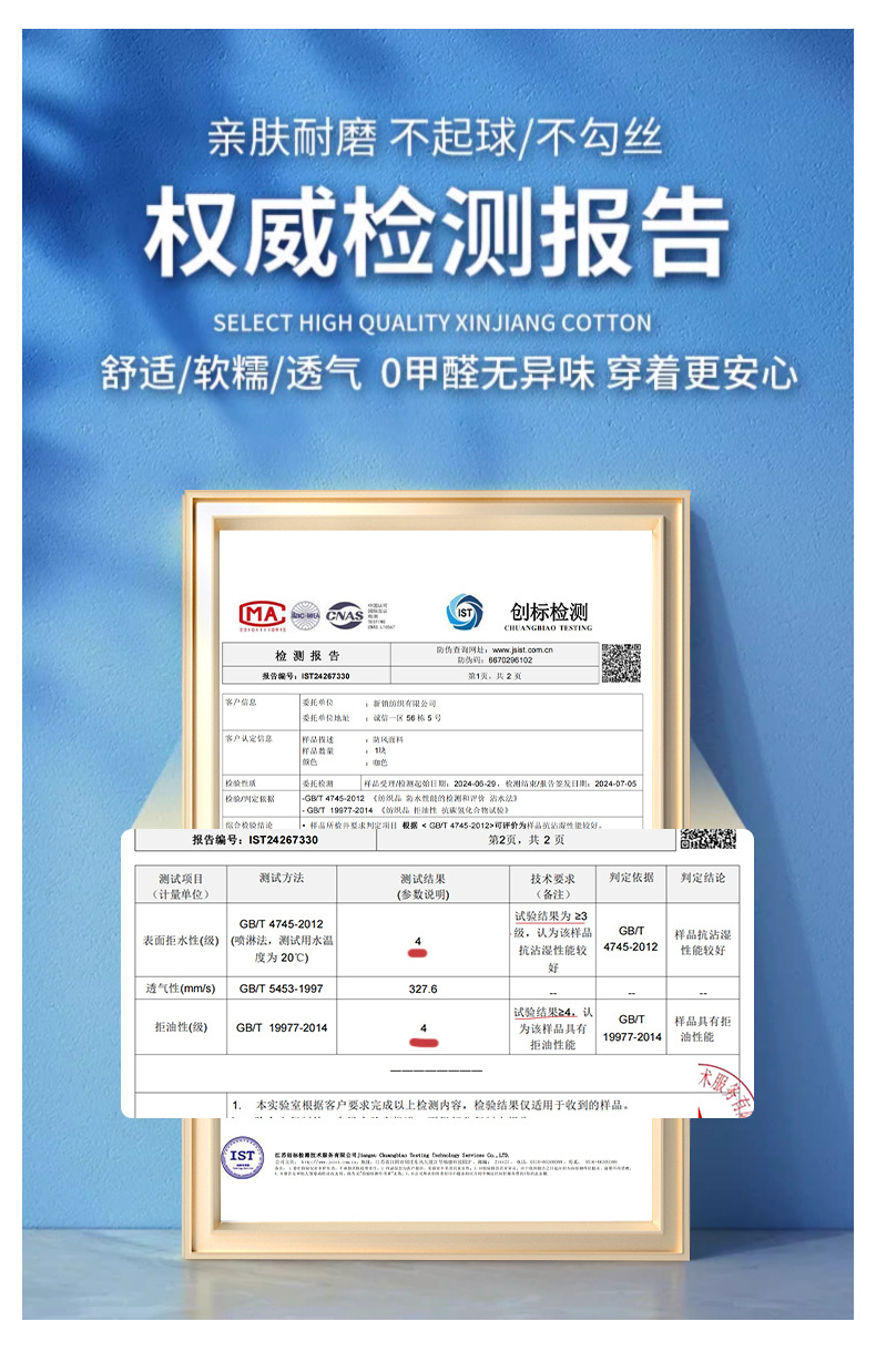 主面料成分含量 95%及以上