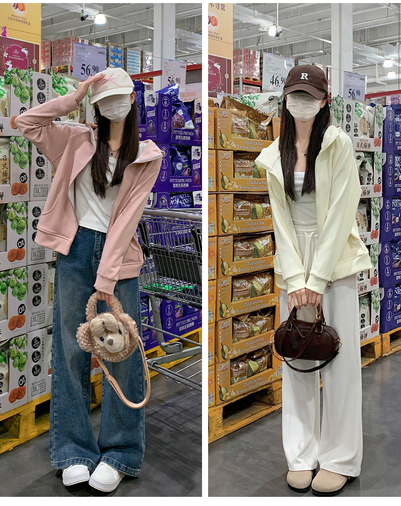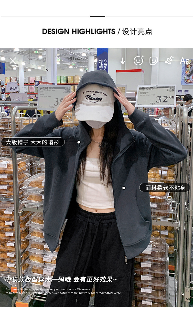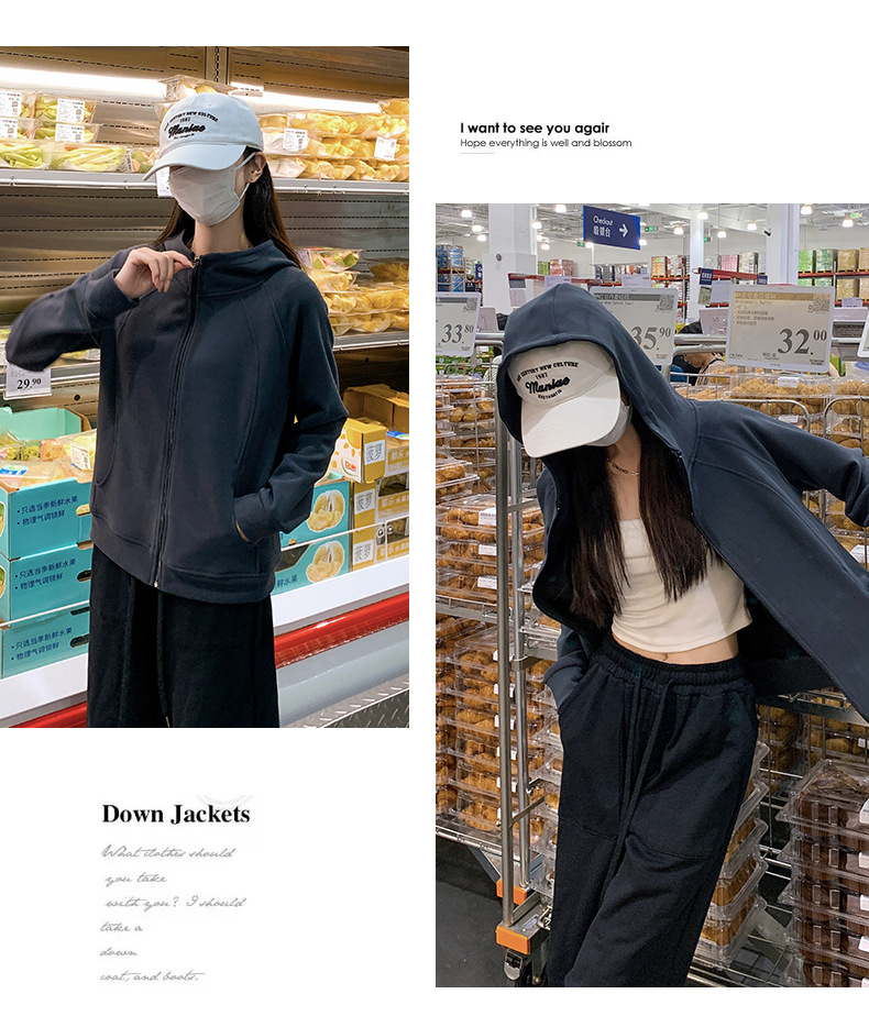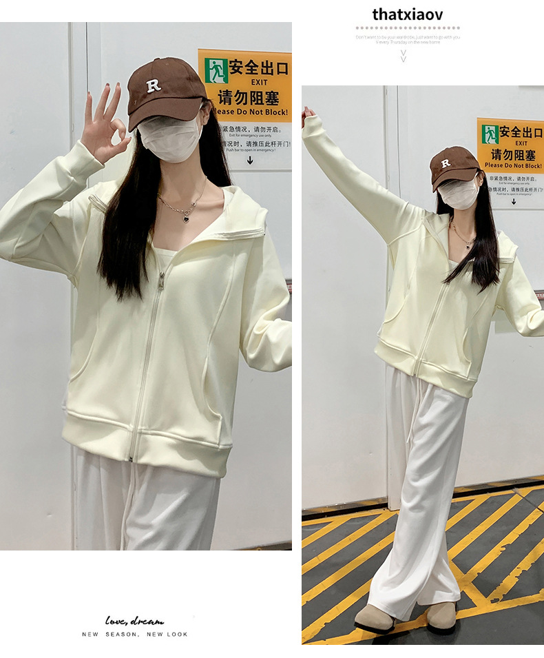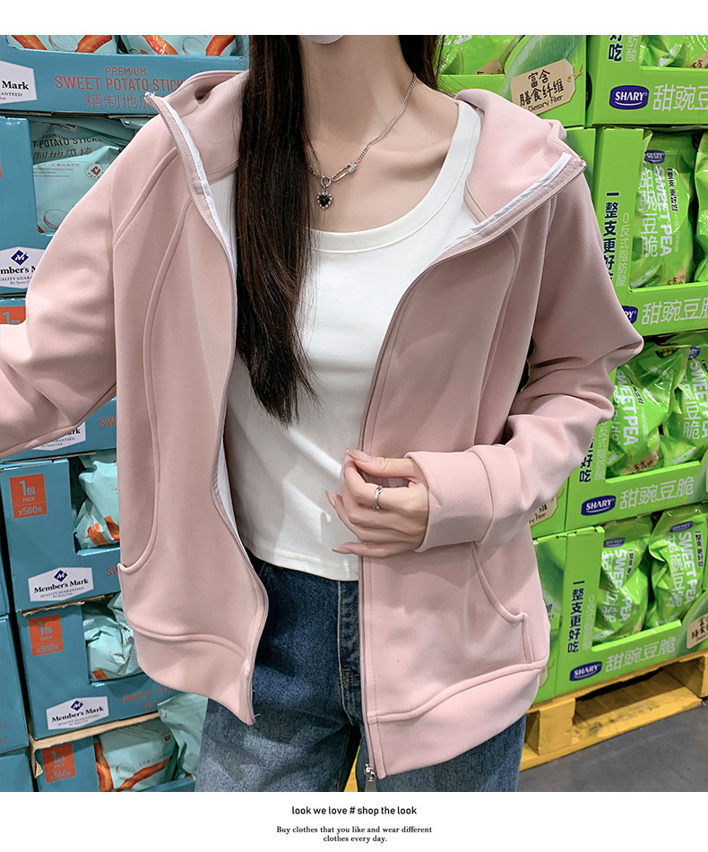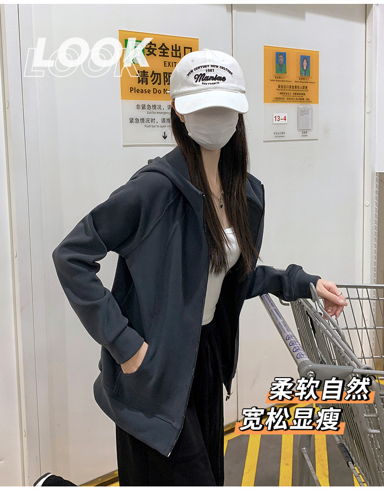 早秋拉链开衫连帽卫衣女2025新款宽松韩系修身休闲百搭秋季外套