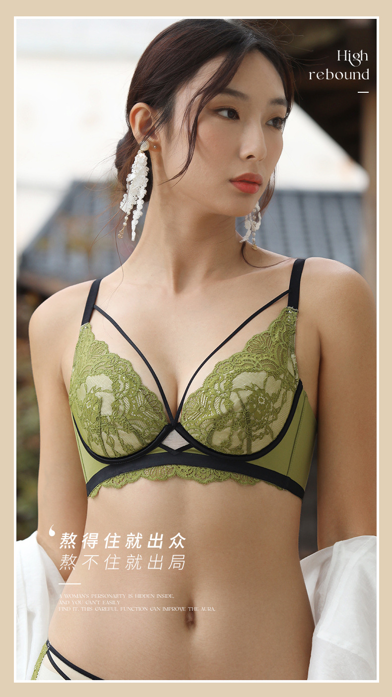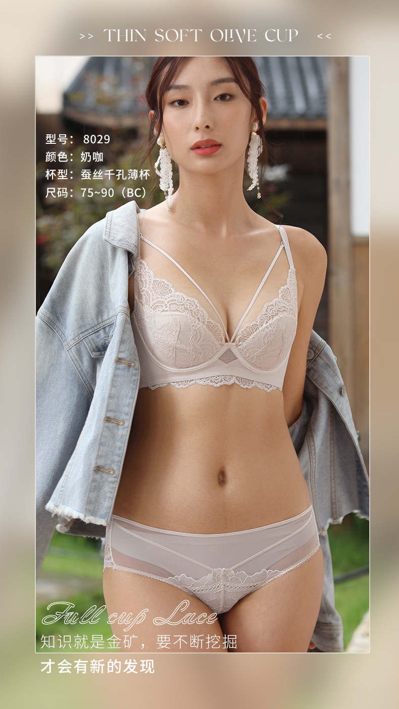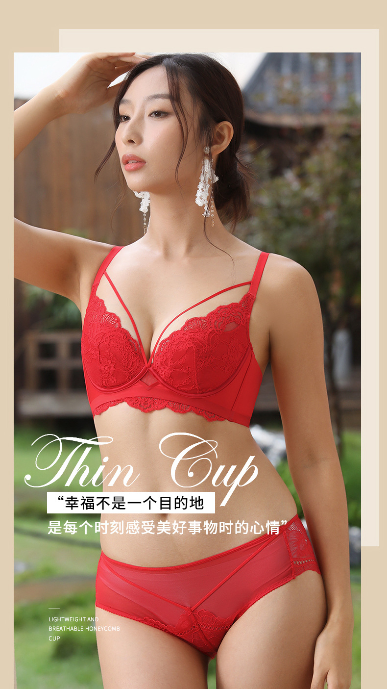 超薄款大胸显小女调整型收副乳防下垂软钢圈文胸6603蕾丝内衣套装