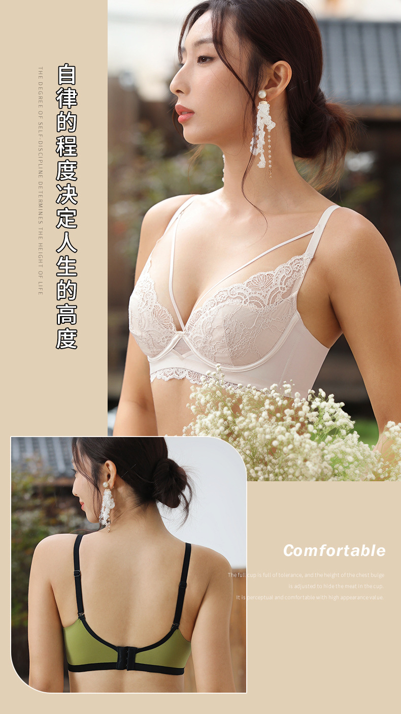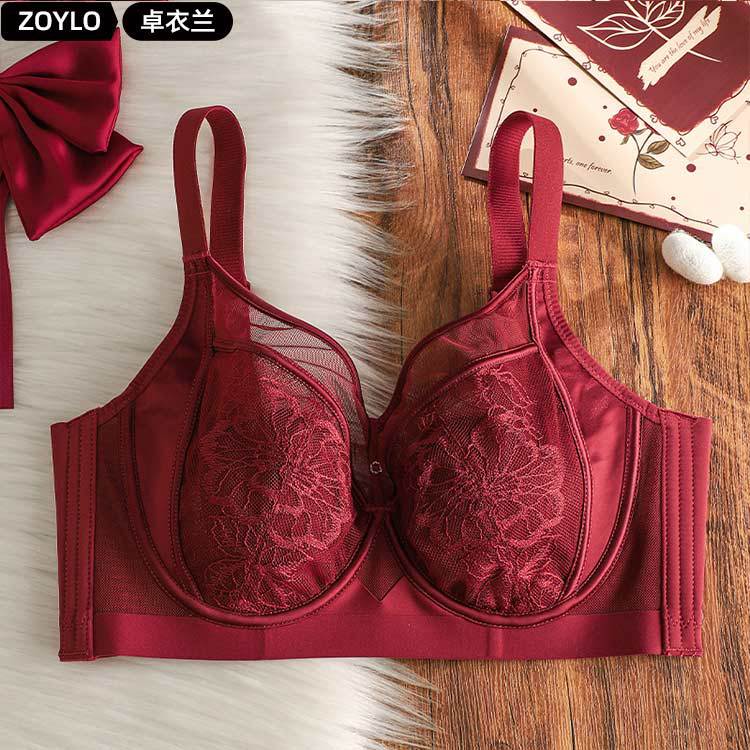 现货蕾丝女士内衣大胸显小调整型文胸聚拢软钢圈收副乳防下垂胸罩