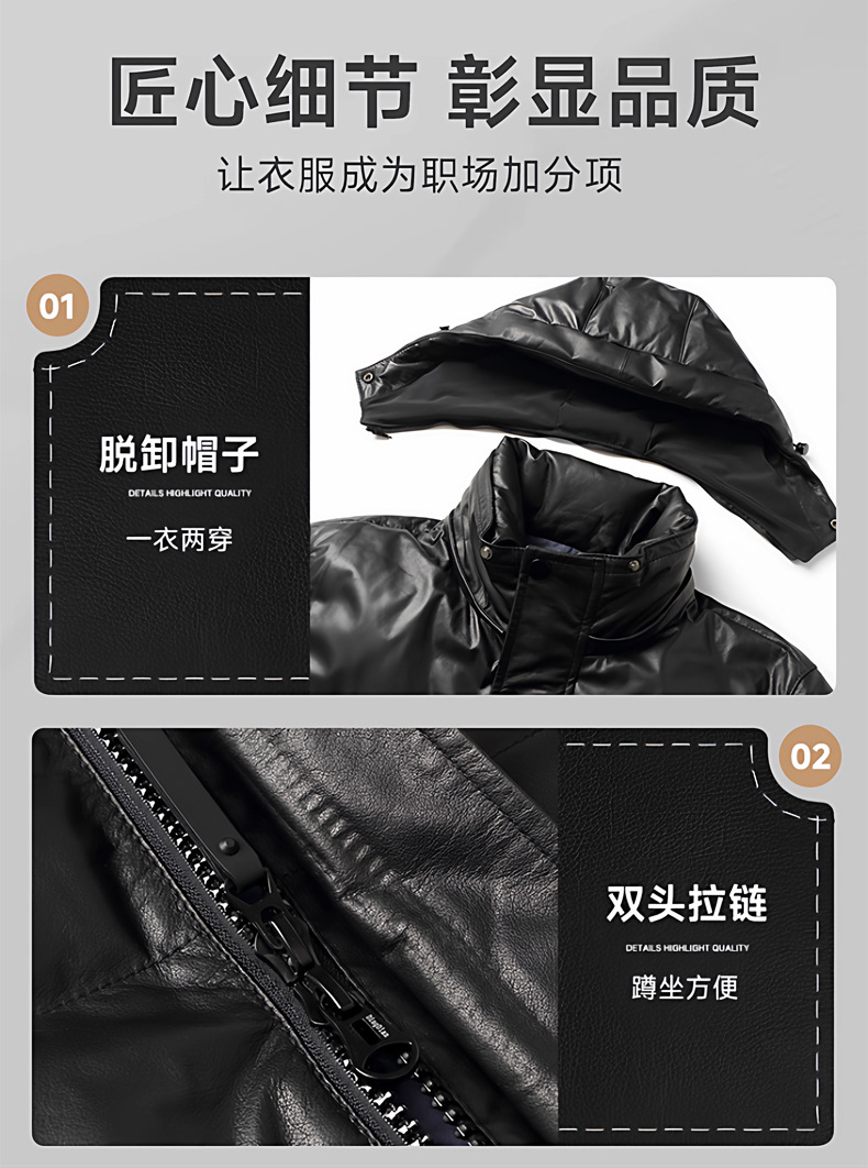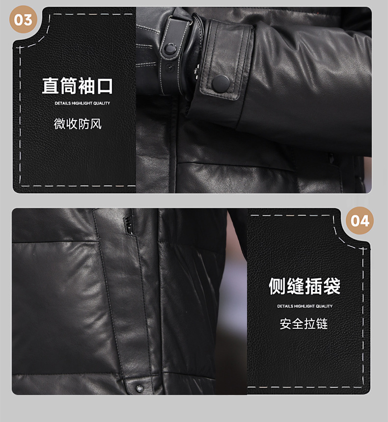 海宁真皮皮衣男士牛皮羽绒服可脱卸连帽白鹅绒保暖冬季潮流外套
