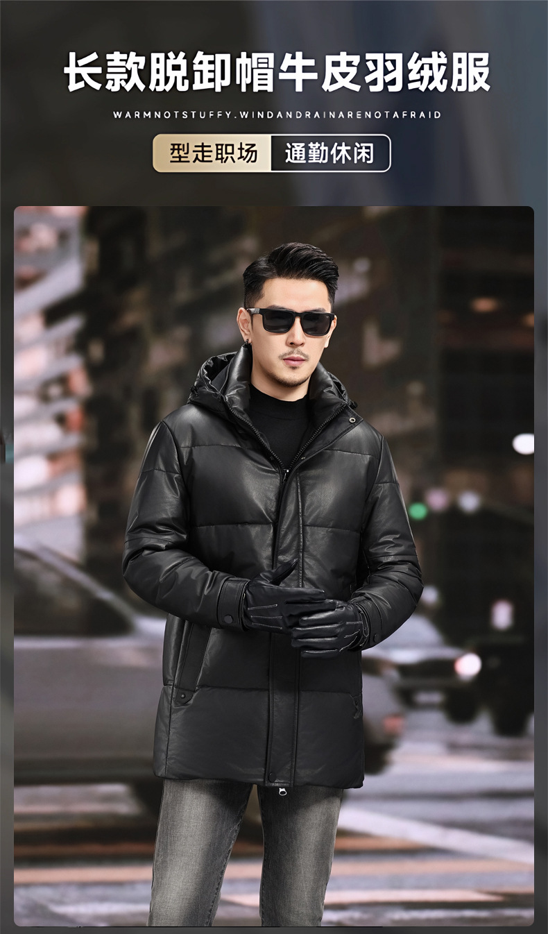 2025冬季新款皮羽绒服男头层小牛皮可脱卸帽子真皮皮衣男长款外套