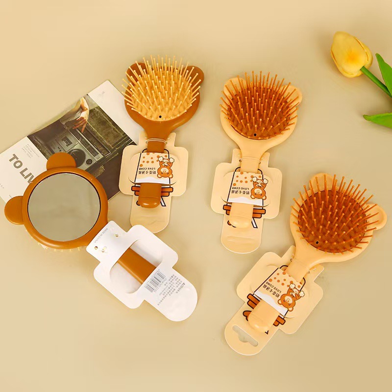 大きいサイズのカレー色のミルクティーのクールな熊のエアクッションの美容院の多元的な店の携帯の小さい櫛のマッサージのエアクッションの櫛