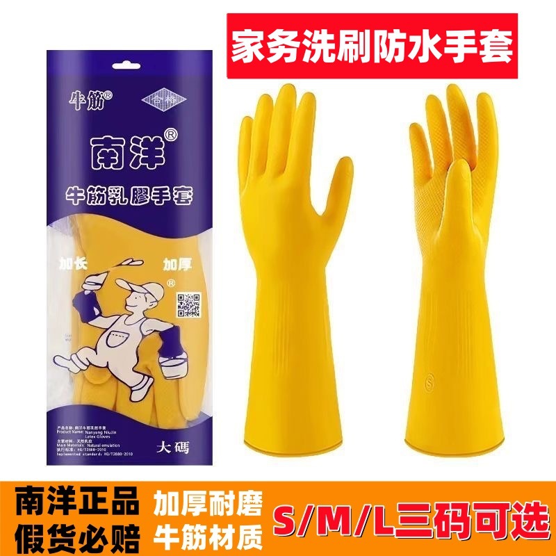 南洋牛筋乳胶洗碗手套加厚耐用家务清洁防水厨房洗碗橡胶胶皮手套