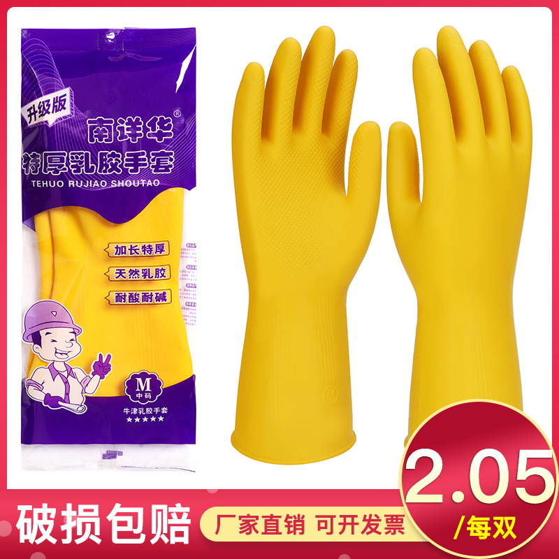 南翔華ブランド牛筋手袋 厚手ラテックスゴム手袋 卸売 家事用食器洗い用プラスチックゴム手袋 オックスフォード防水