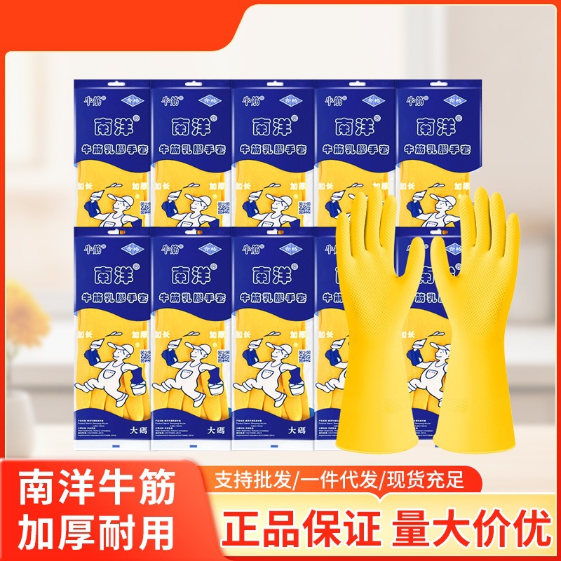 南洋ラテックス手袋滑り止め厚い防水ゴム牛筋厨房皿洗い家事清潔家庭用手袋卸売り