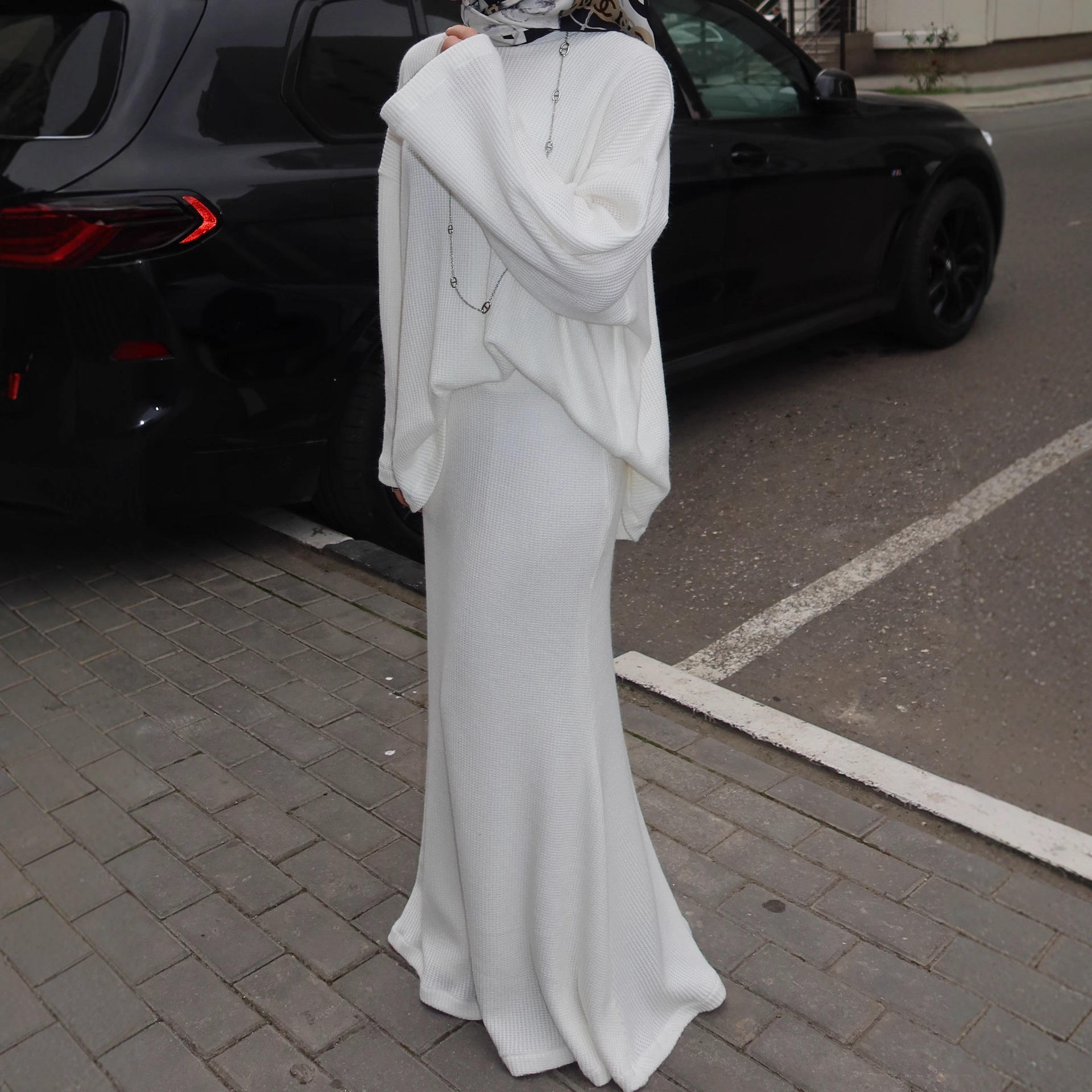 2025年秋ヨーロッパ、アメリカ、中東、スリム、ゆったり、快適、多用途通勤長袖トップス、ロングスカート、スカーフ3点セット