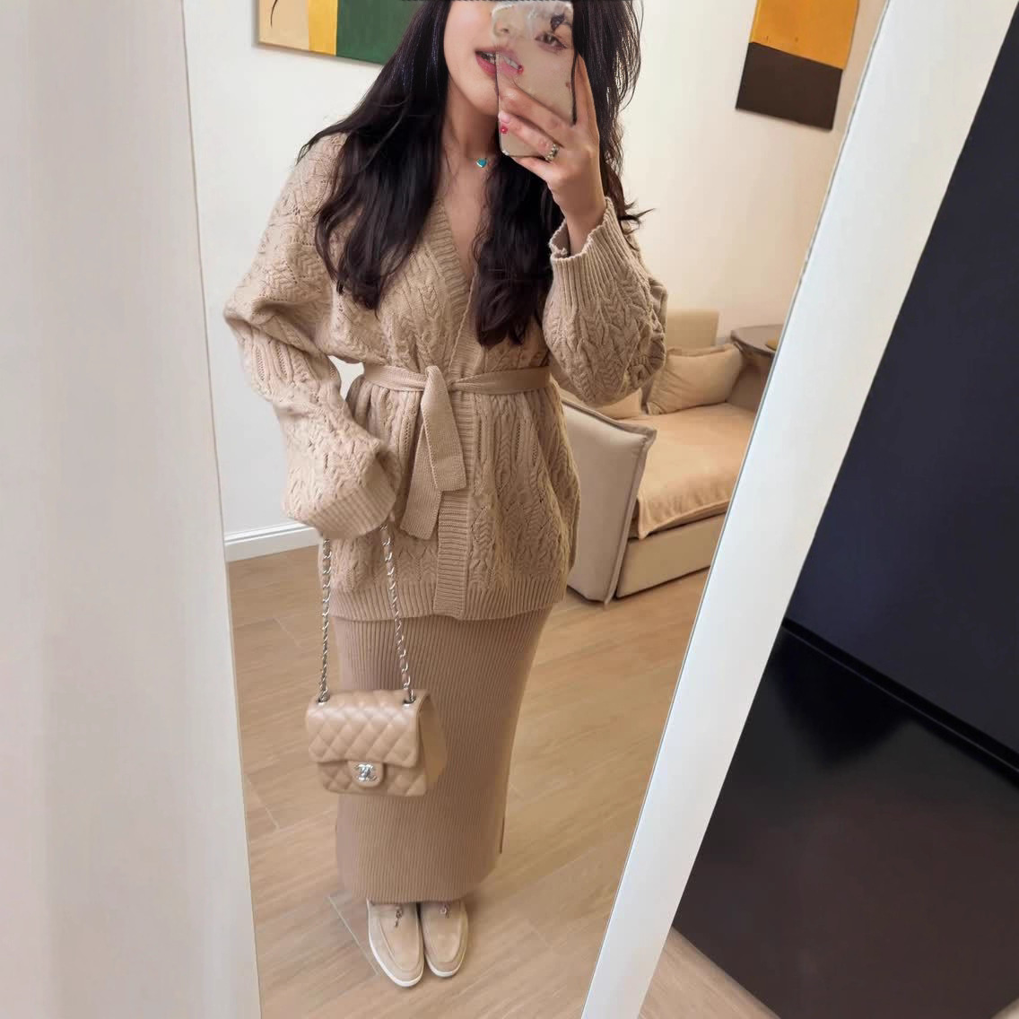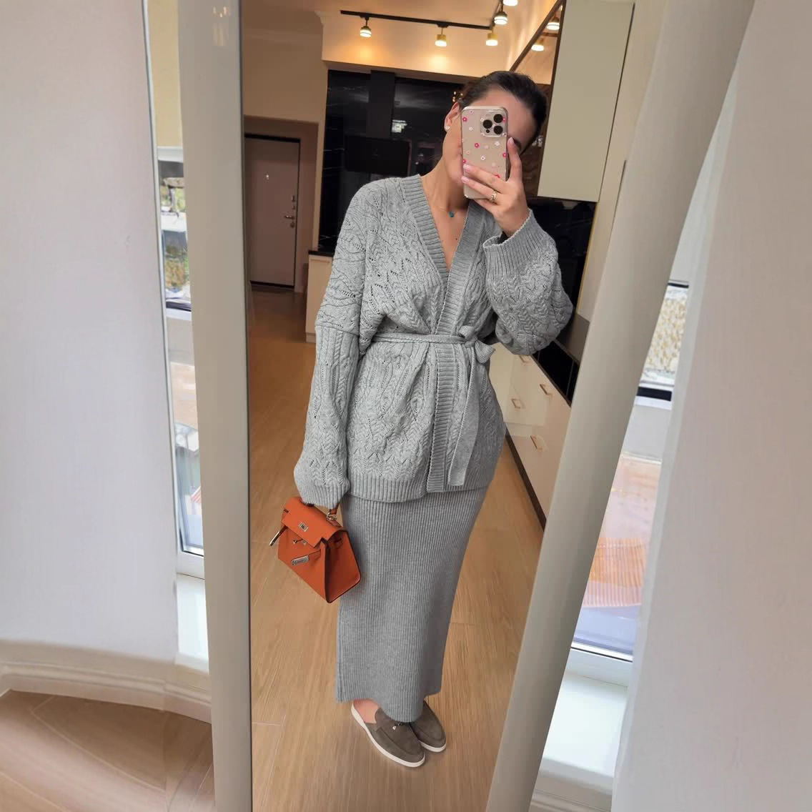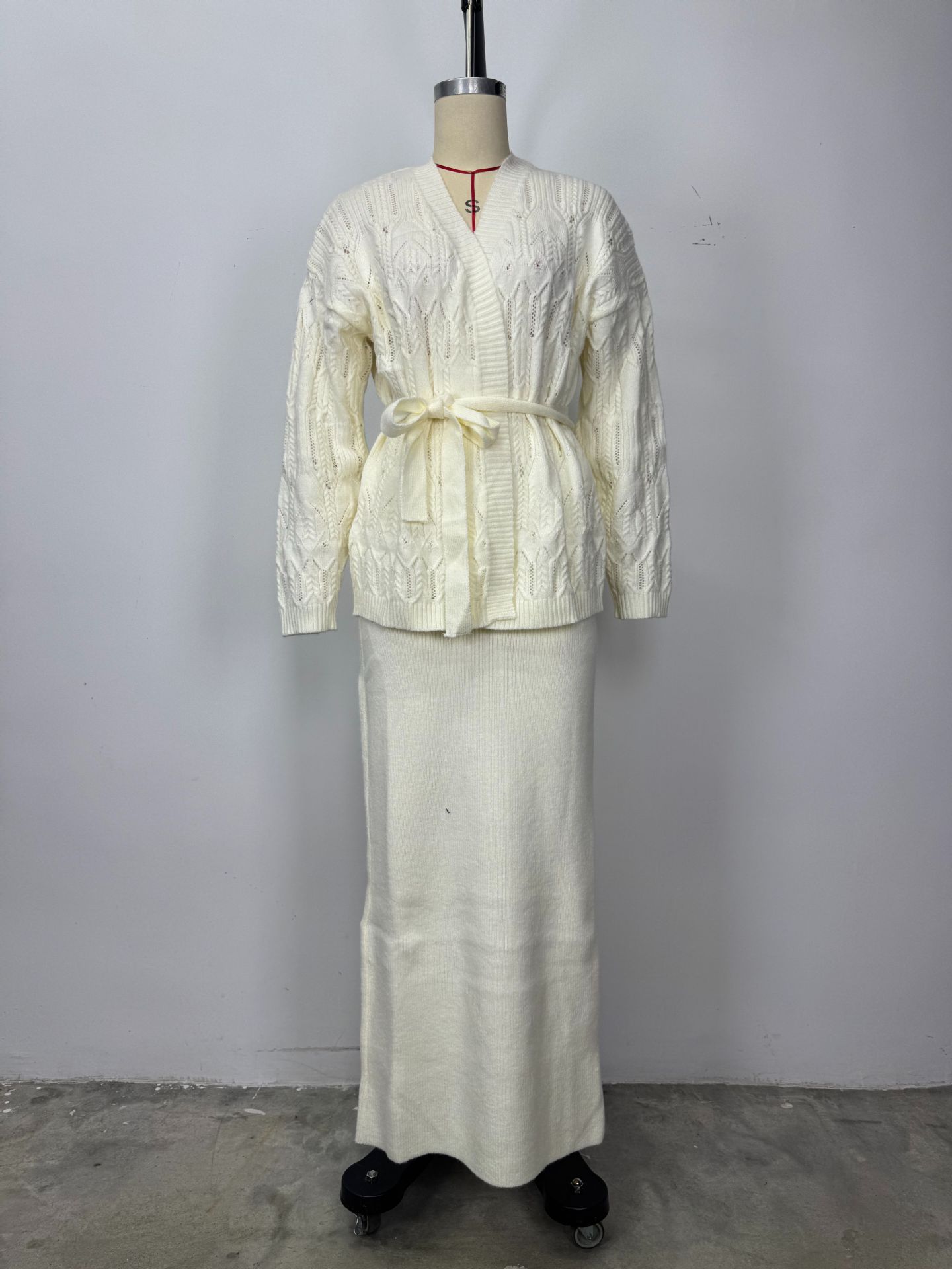 欧美跨境女装长裙2025秋季新款居家休闲针织开衫外套毛衣包臀裙