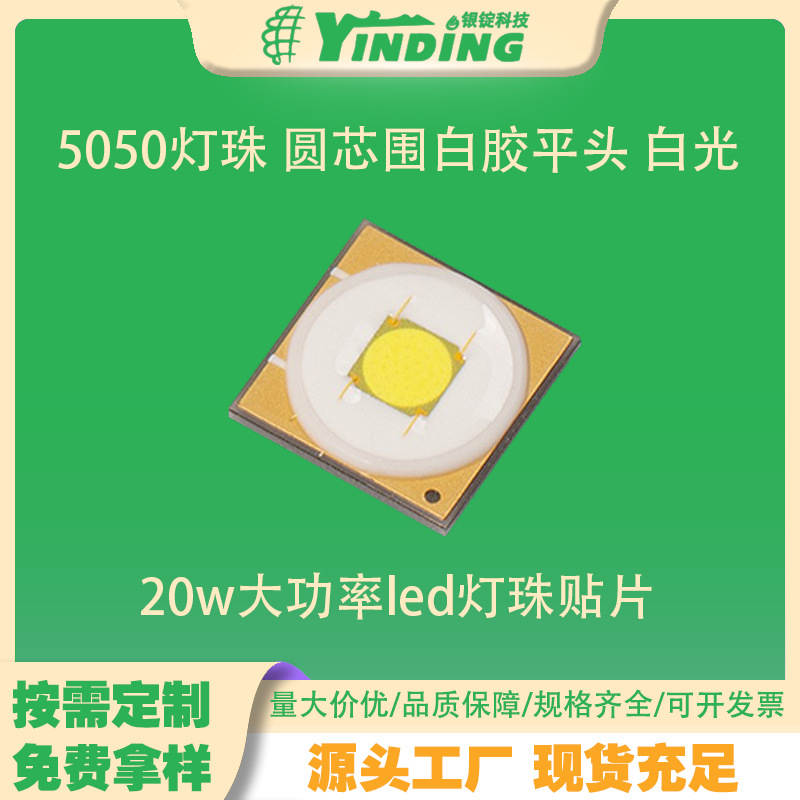 5050灯珠 圆芯围白胶平头 白光 20w大功率led灯珠贴片 舞台照明