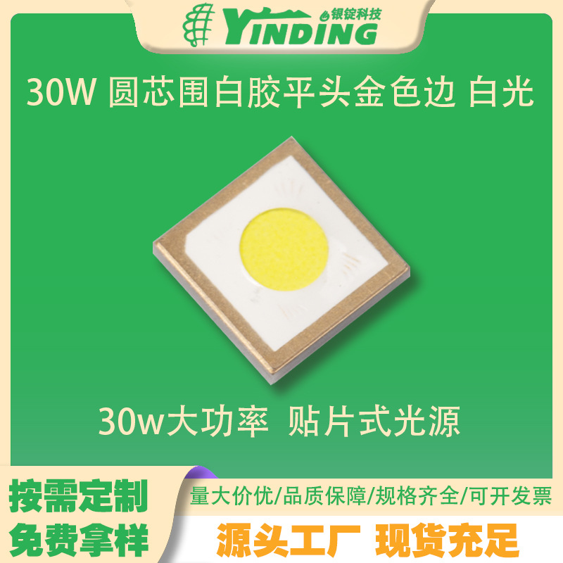 5050 30W 圆芯围白胶平头金色边 白光高亮 聚光手电筒led灯珠贴片