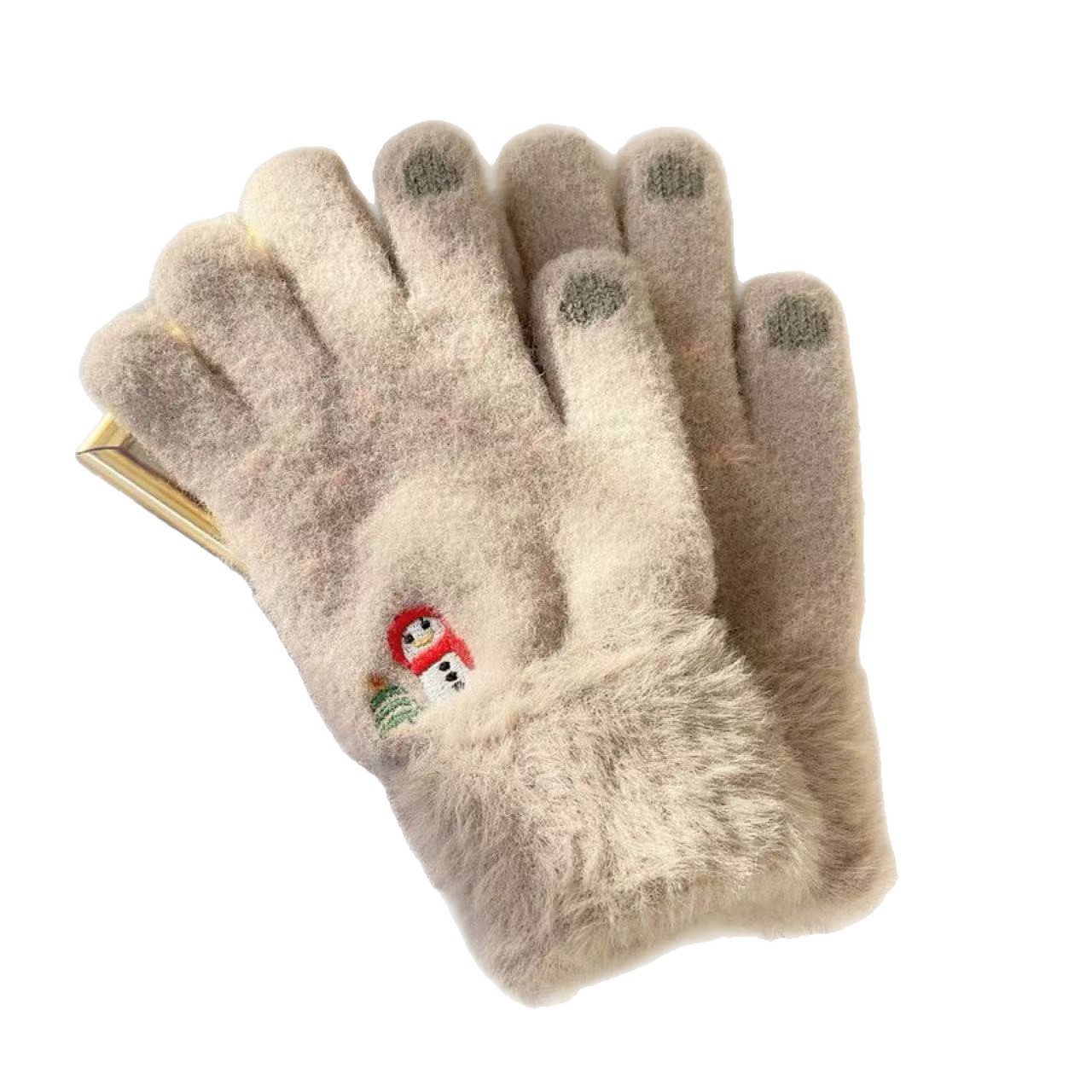 冬季刺绣可爱圣诞雪人毛绒手套保暖貂绒针织触屏手套女款保暖手套