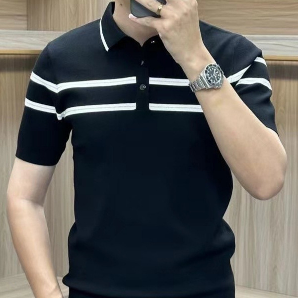 アメリカンサマービジネススタイルボタン半袖ラペルトップファッショナブルなストライプポロシャツスリムで多用途なイン