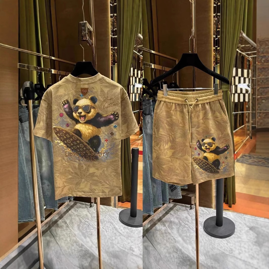 2025 夏の新スタイルライトラグジュアリーハイエンドスケートボードベア Tシャツプリント半袖メンズトレンディ多用途 5 点パンツ