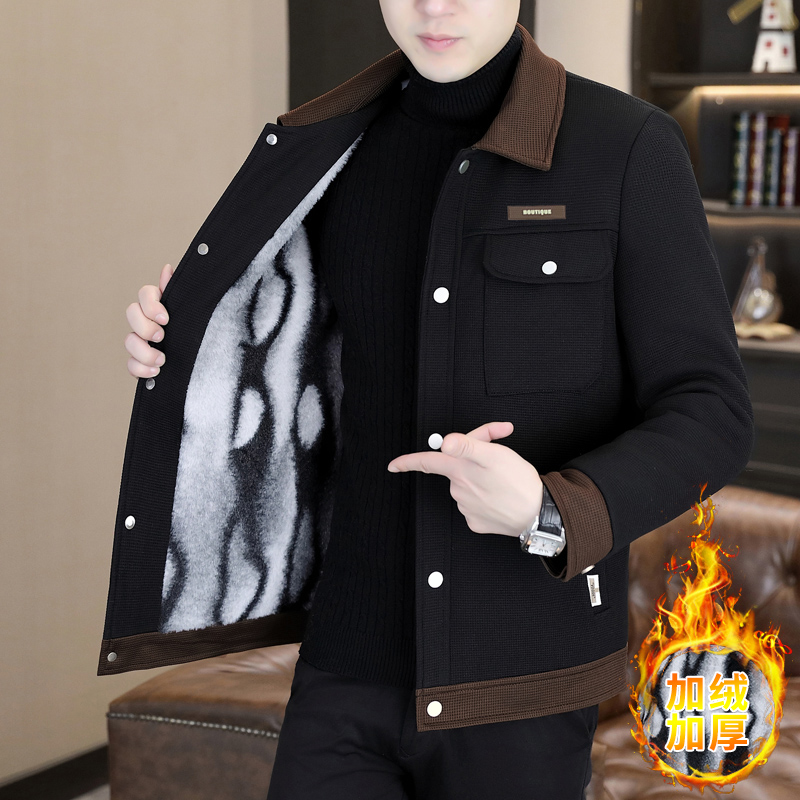 冬季加绒加厚男士爆款轻奢外套上衣开衫夹克秋冬季立领休闲男