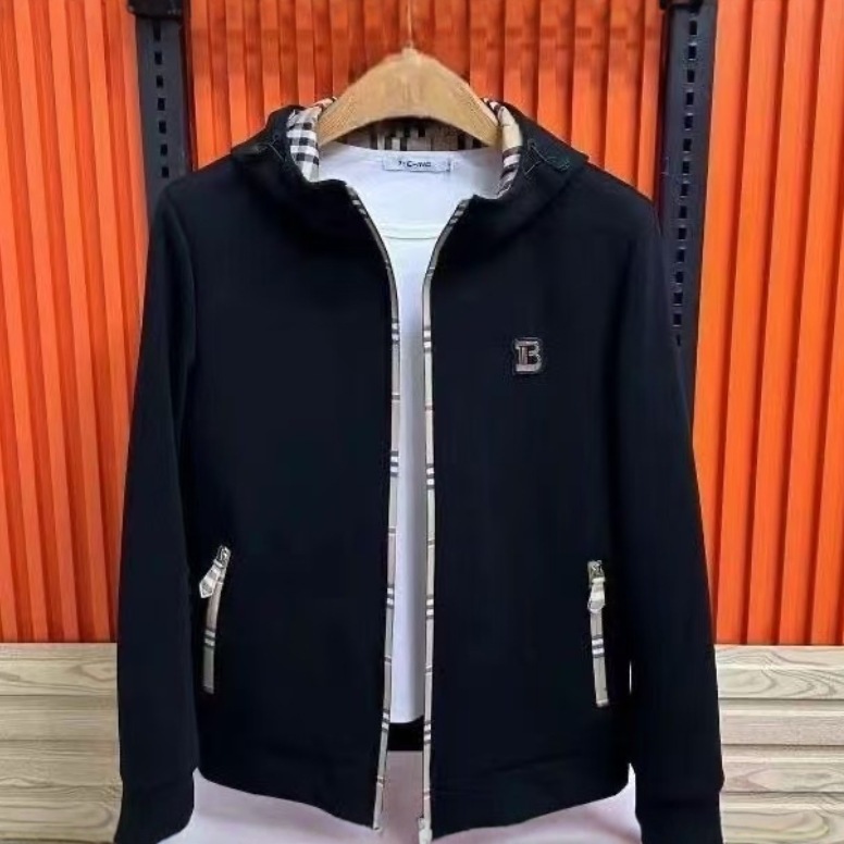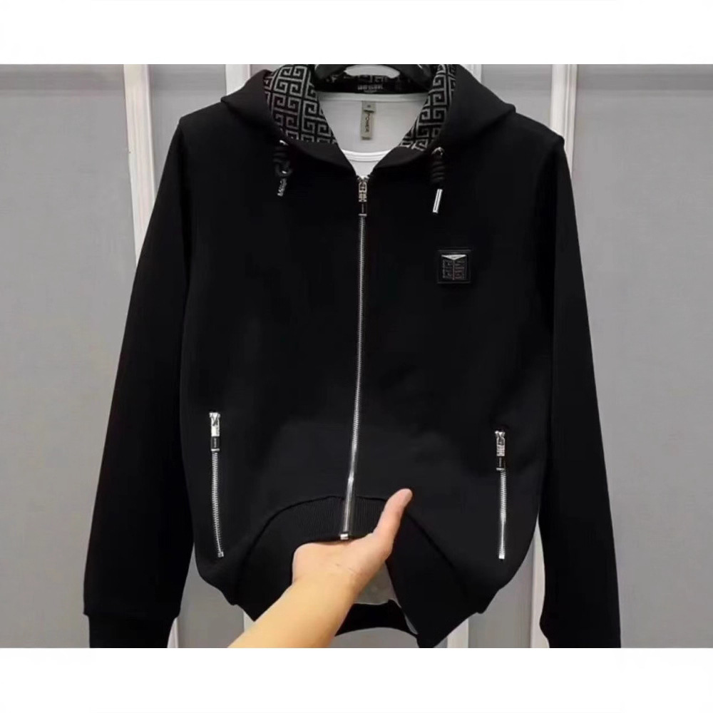 欧洲站潮牌时尚撞色夹克男装春秋季厚款修身休闲轻奢防风连帽外套