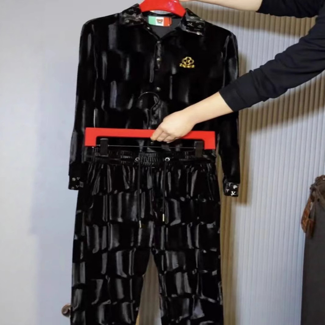 軽くて豪華でハンサムで多用途な秋冬の高級フルセットヨーロッパゴールドベルベットメンズスーツ長袖ズボン2点セット